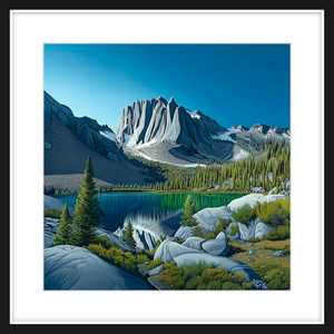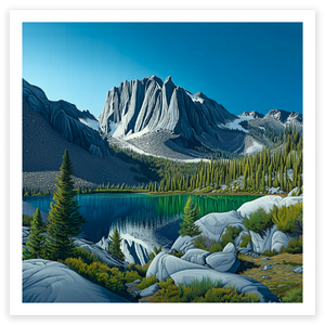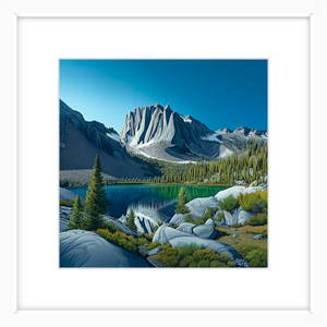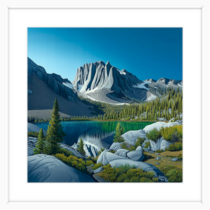 Breathe in the crisp mountain air, tinged with the scent of pine and the coolness of the lake. The sunlight shifts across the jagged peaks, highlighting their rugged grandeur, while the still water reflects the towering trees like a perfect mirror. There’s a serenity here, a quiet pause in nature’s endless rhythm.