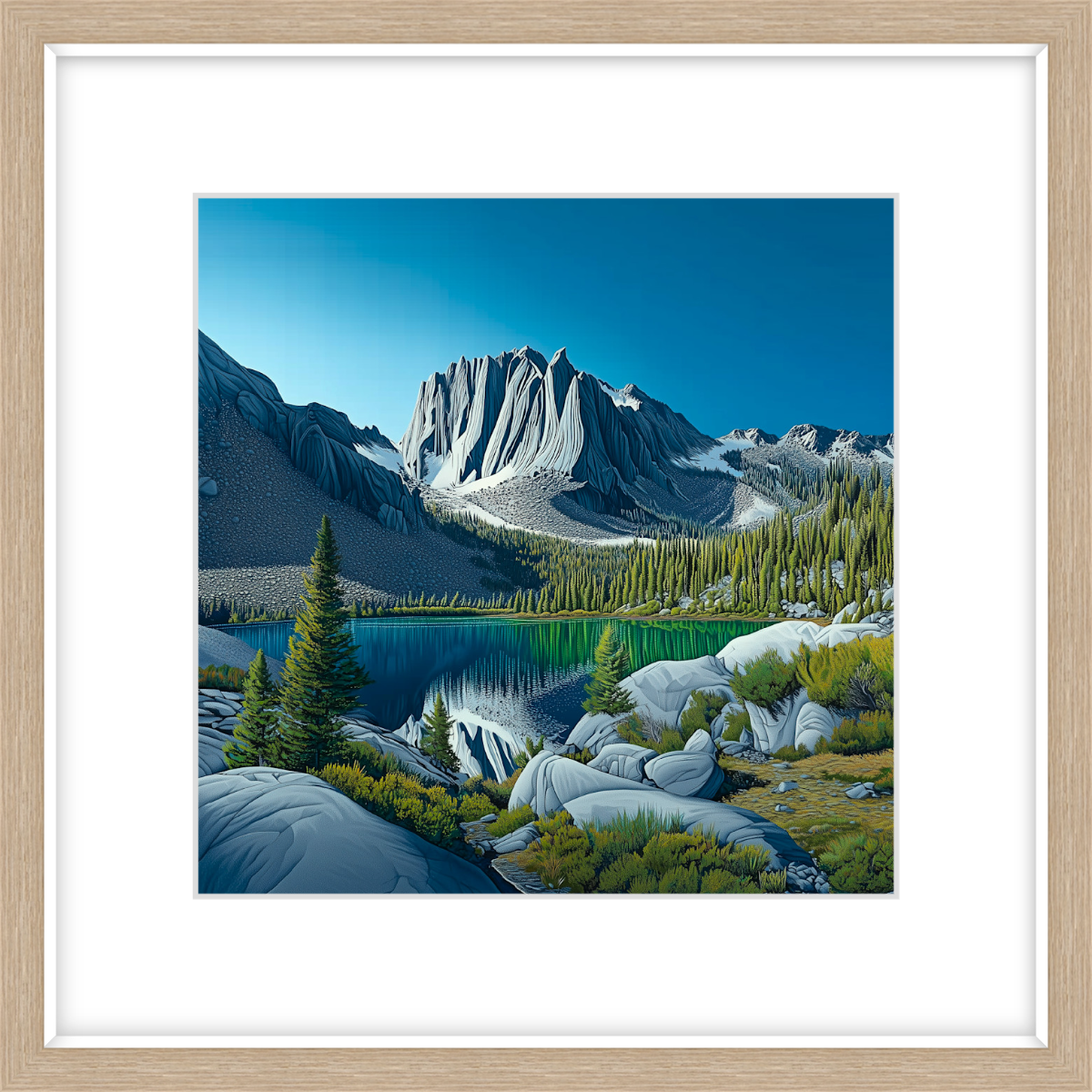 This art print of Big Pines National Park is available as 400x400mm art print, 600x600mm art print and 800x800mm art print. You may also choose to take the hassle out of framing and order it framed, in either black, white or natural.