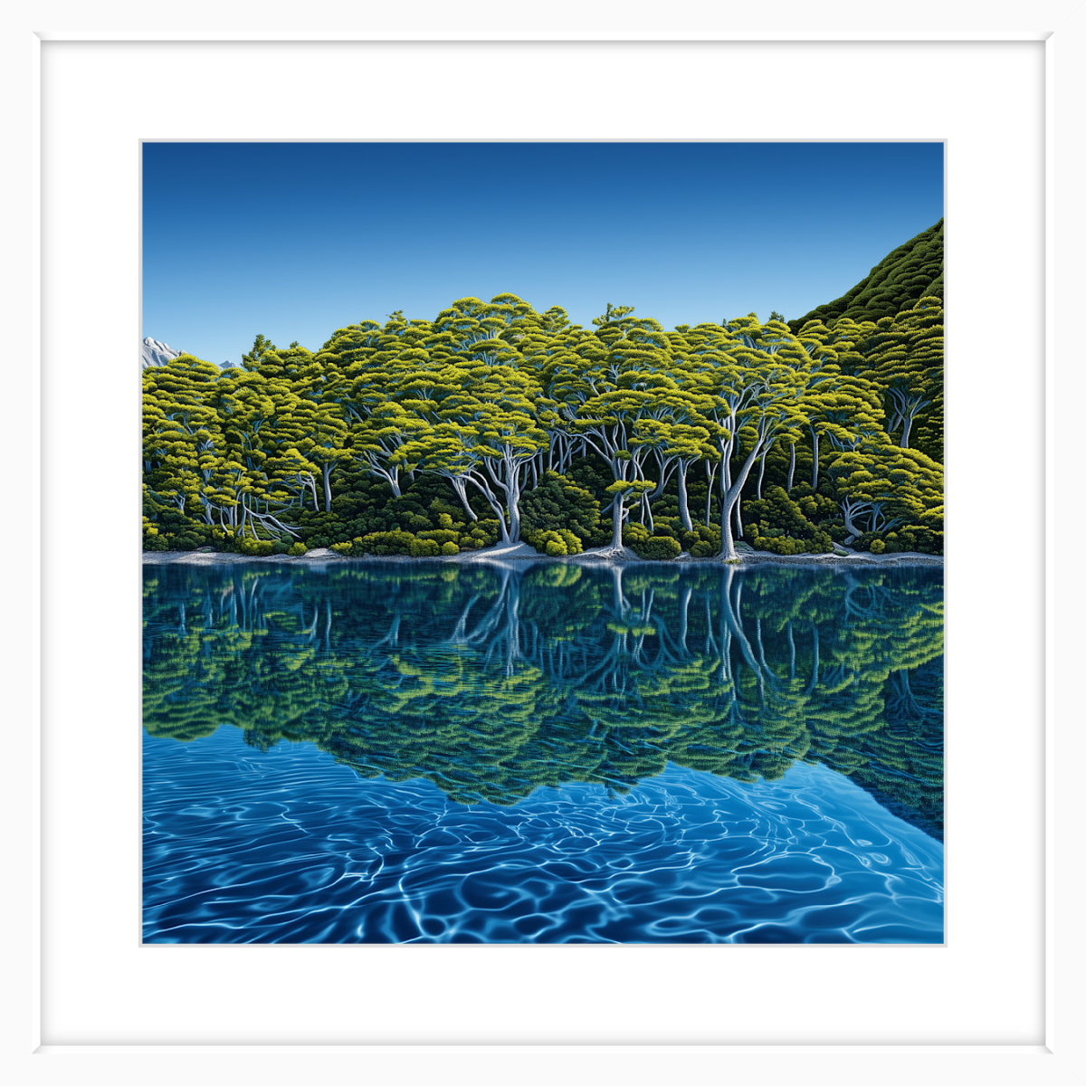 "Blue Lake" is a landscape art print, printed on high quality Epson Enhanced 192gsm matte paper, so you'll get images with sharp detail, high colour saturation and a high gamut. It is quick drying with a flat matte finish and a bright white base that accentuates highlights and tones.
