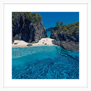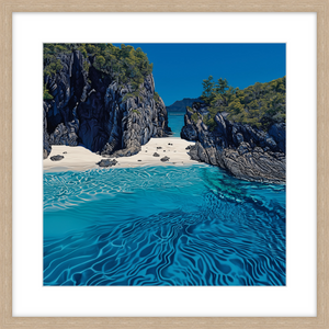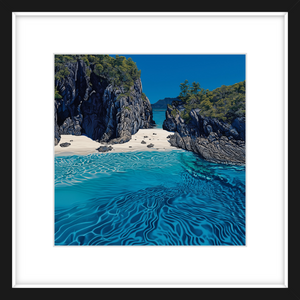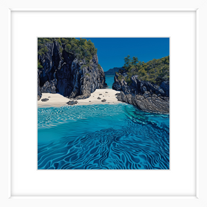 Bring your unforgettable beach holiday home with you, with this art print of Blue Pearl Bay. It will look achingly beautiful on your living room wall!