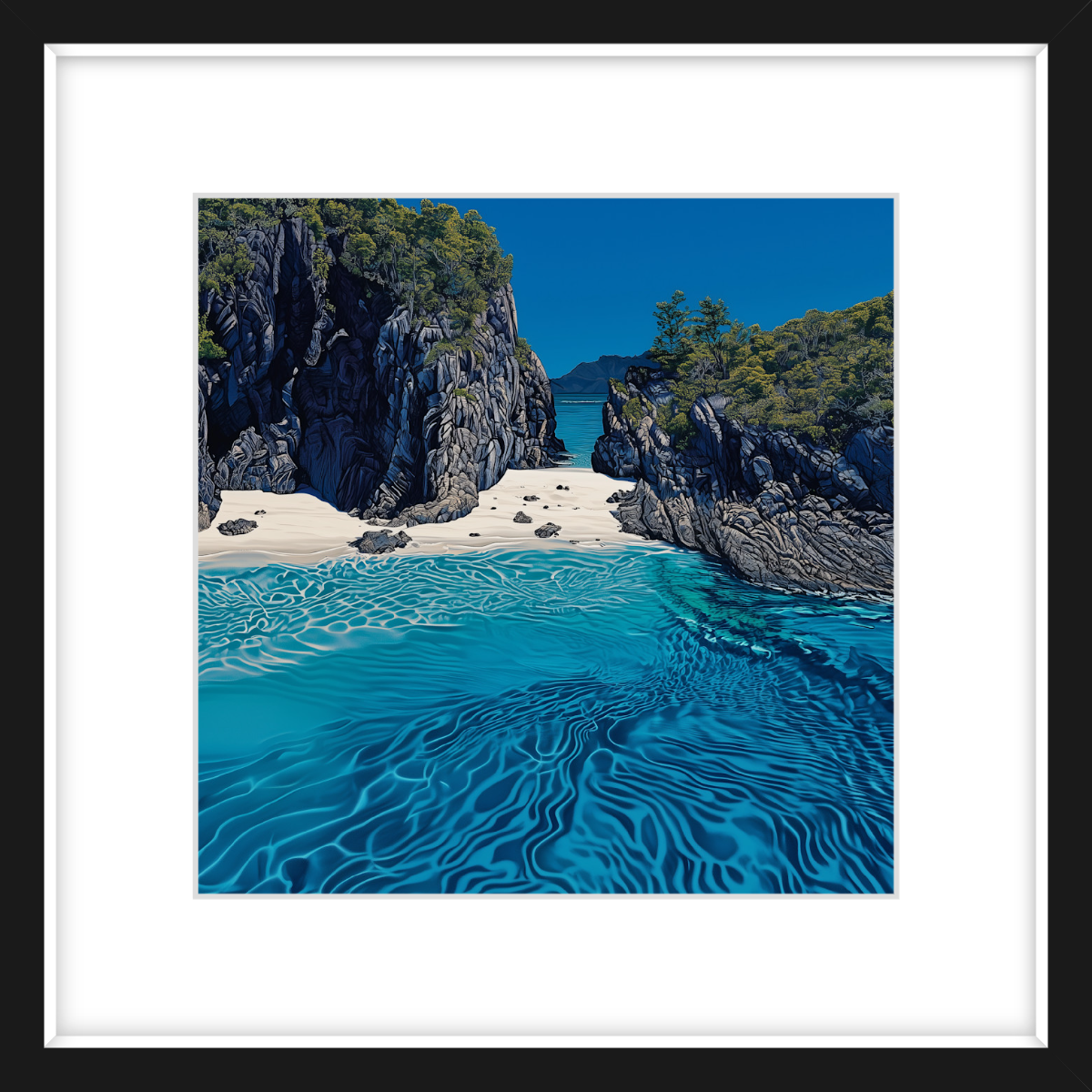 This amazing square beach art print of Blue Pearl Bay is available as 400x400mm art print, 600x600mm art print and 800x800mm art print.