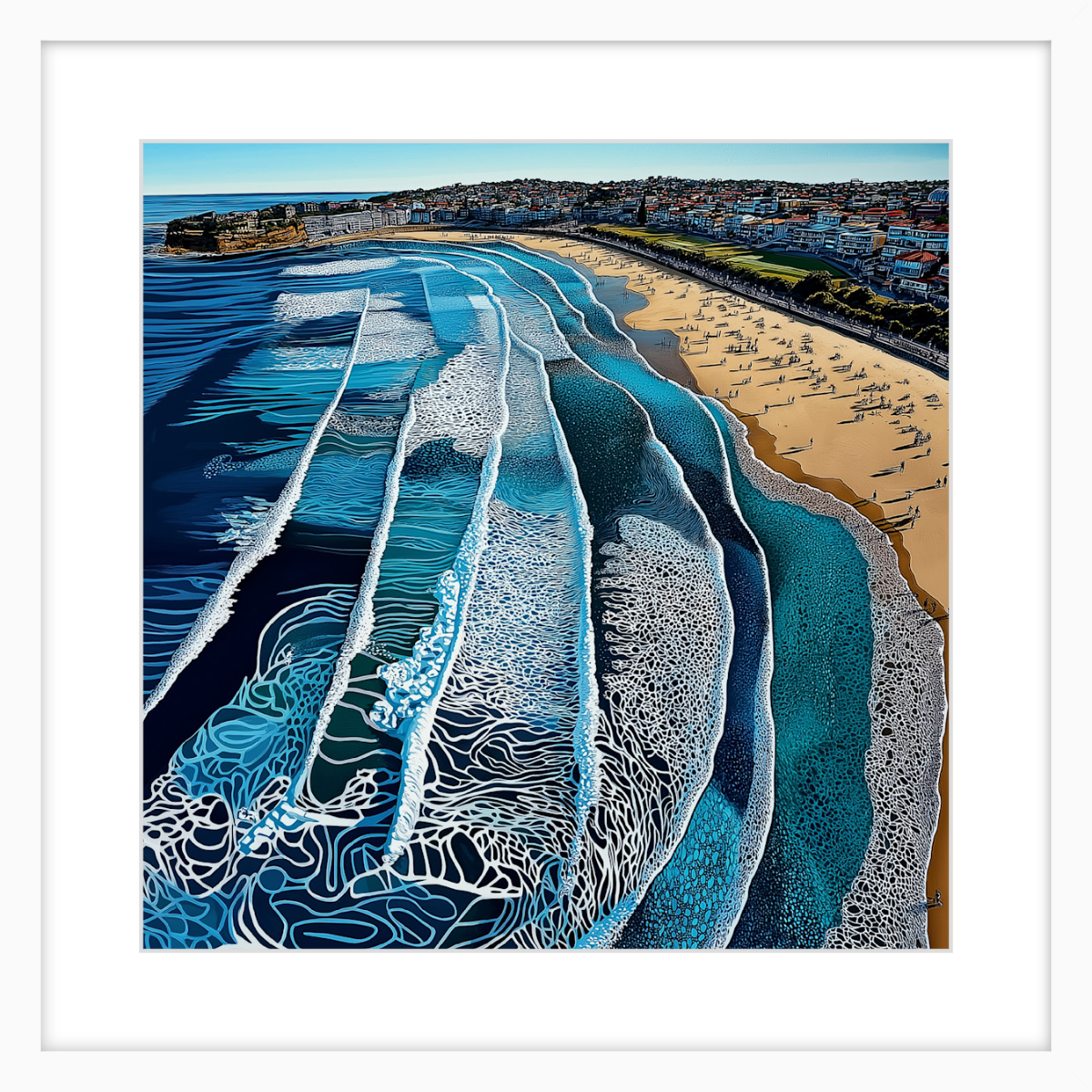 This art print of Bondi Beach is available as 400x400mm art print, 600x600mm art print and 800x800mm art print. It comes as an unframed print, however if you reside in New Zealand and would like a framed print, get in touch. Sorry Australians, only unframed prints available at this stage, but there are plenty of framers in Australia who will happily frame your wall art print for you. Prints are shipped rolled in a tube, and delivery is free.