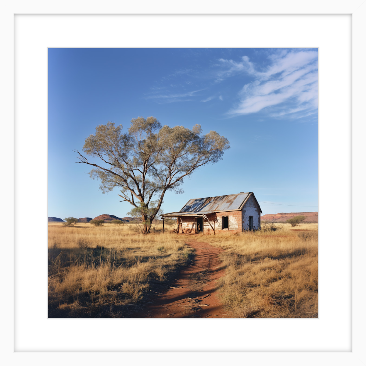 "Bushland Bungalow" is a landscape art print, printed on high quality Epson Enhanced 192gsm matte paper, so you'll get images with sharp detail, high colour saturation and a high gamut. It is quick drying with a flat matte finish and a bright white base that accentuates highlights and tones.