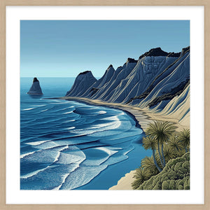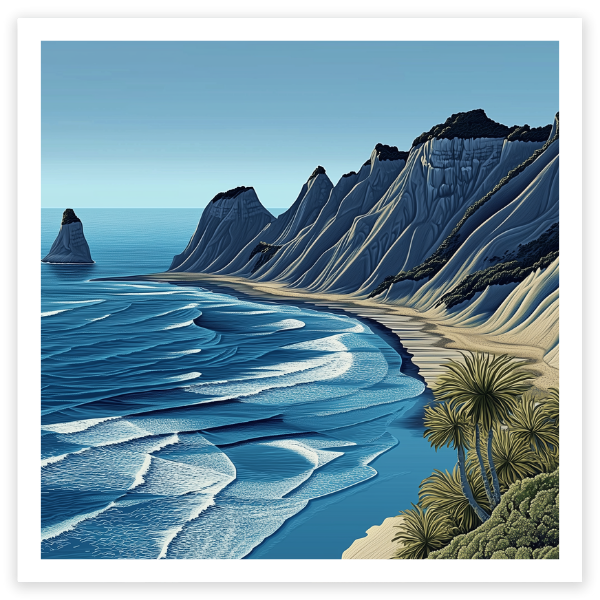 Cape Kidnappers captures the striking contrast of sheer white cliffs against the deep blue Pacific. Named after an attempted abduction during Captain Cook’s 1769 voyage, the place carries a charged history, yet in this artwork I've tried to make it a study in light, form, and quiet tension between beauty and memory.
