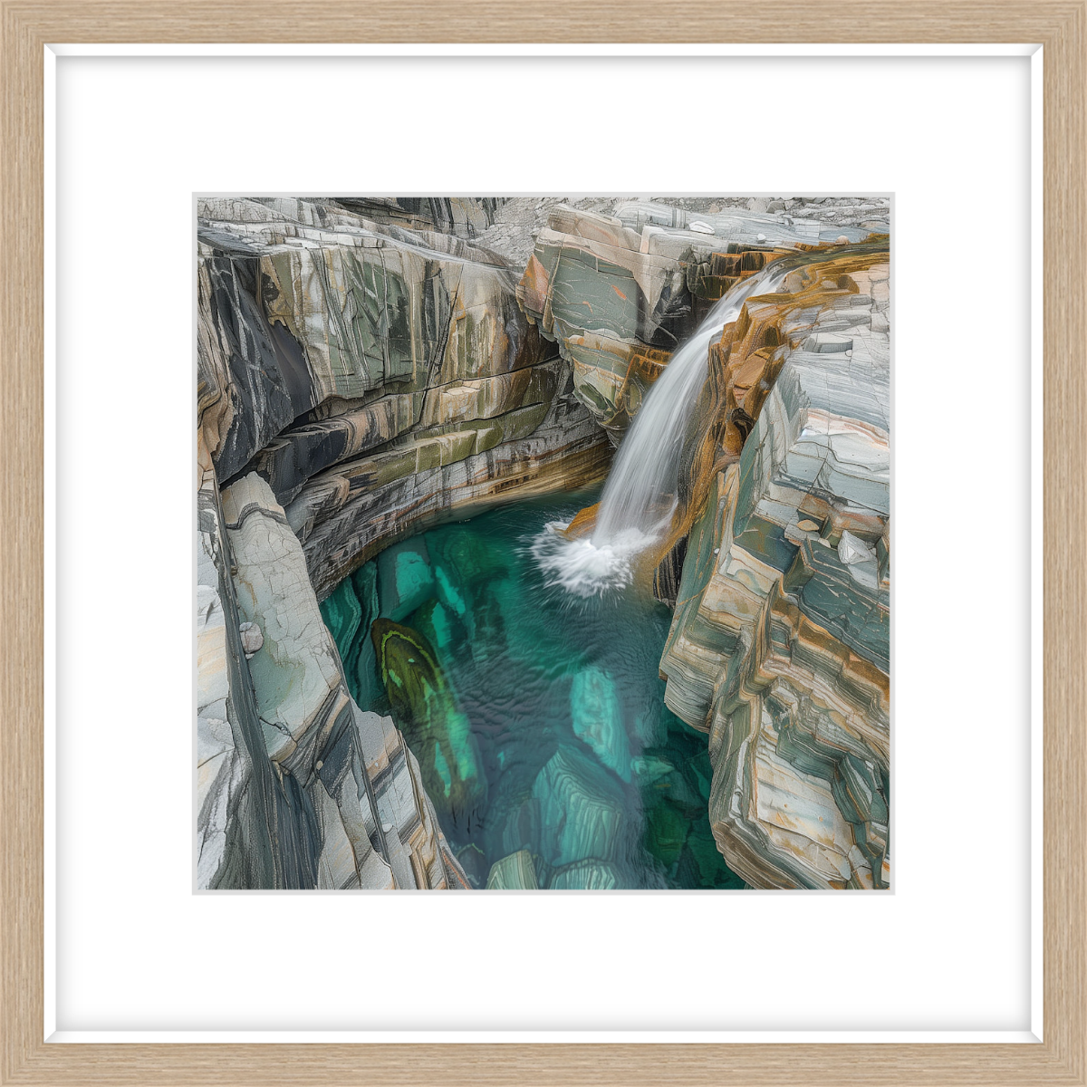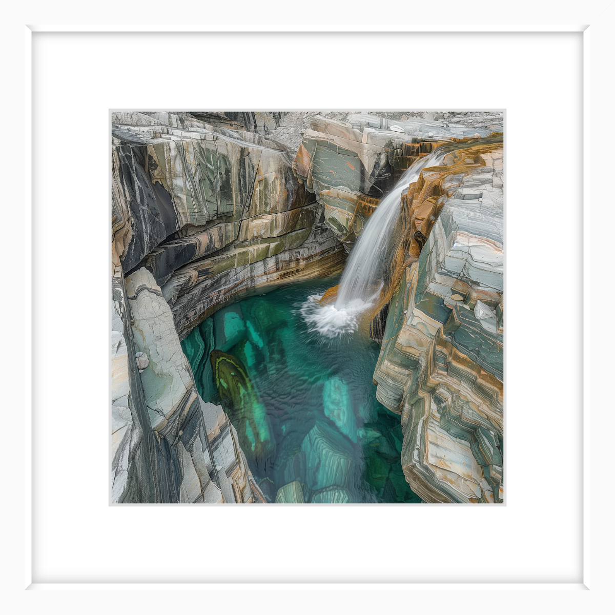 When I created "Cascade of Serenity," I wanted to capture the peaceful yet powerful moment when the water gracefully tumbles into the gorge's emerald depths. Standing there, I felt a profound sense of calm as the sound of the waterfall echoed through the canyon.