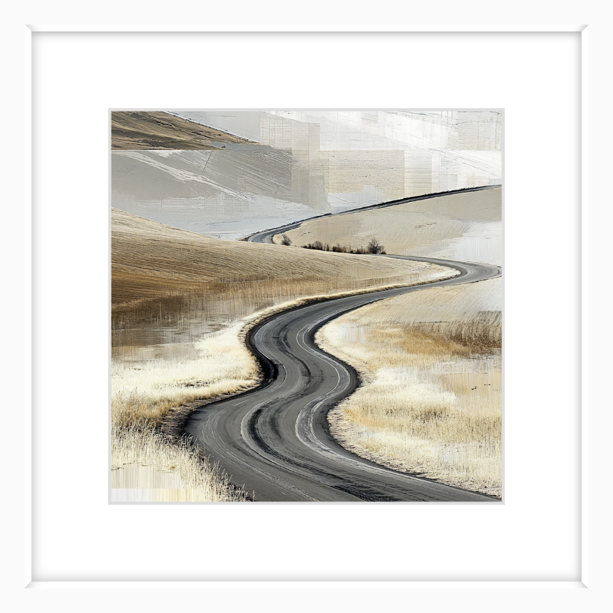 This is the Crown Range Road of my imagination. The undulating landscape, invites contemplation and exploration. The subtle curves and the interplay of light and shadow create a sense of endless possibility.