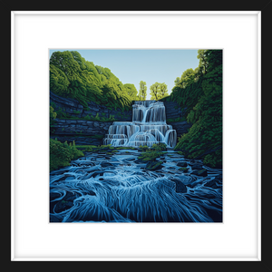 This art print of Chittenango Falls is available as a 250x250mm art print, 400x400mm art print, 600x600mm art print and 800x800mm art print. You may also choose to take the hassle out of framing and order it framed, in either black, white or natural.
