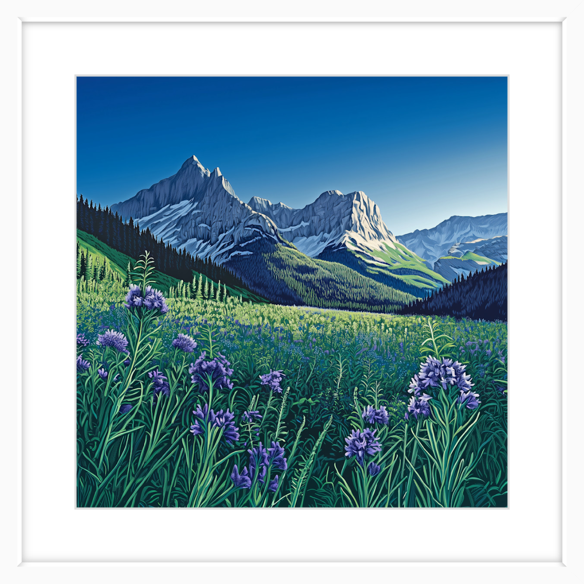 "Flowers in Glacier National Park" is a landscape art print, printed on high quality Epson Enhanced 230gsm matte paper, so you'll get images with sharp detail, high colour saturation and a high gamut. It is quick drying with a flat matte finish and a bright white base that accentuates highlights and tones.