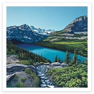 "Glacier National Park" is a landscape art print, printed on high quality Epson Enhanced 230gsm matte paper, so you'll get images with sharp detail, high colour saturation and a high gamut. It is quick drying with a flat matte finish and a bright white base that accentuates highlights and tones.