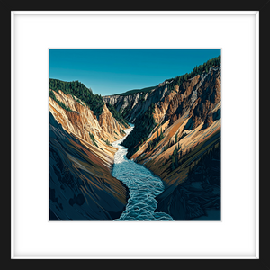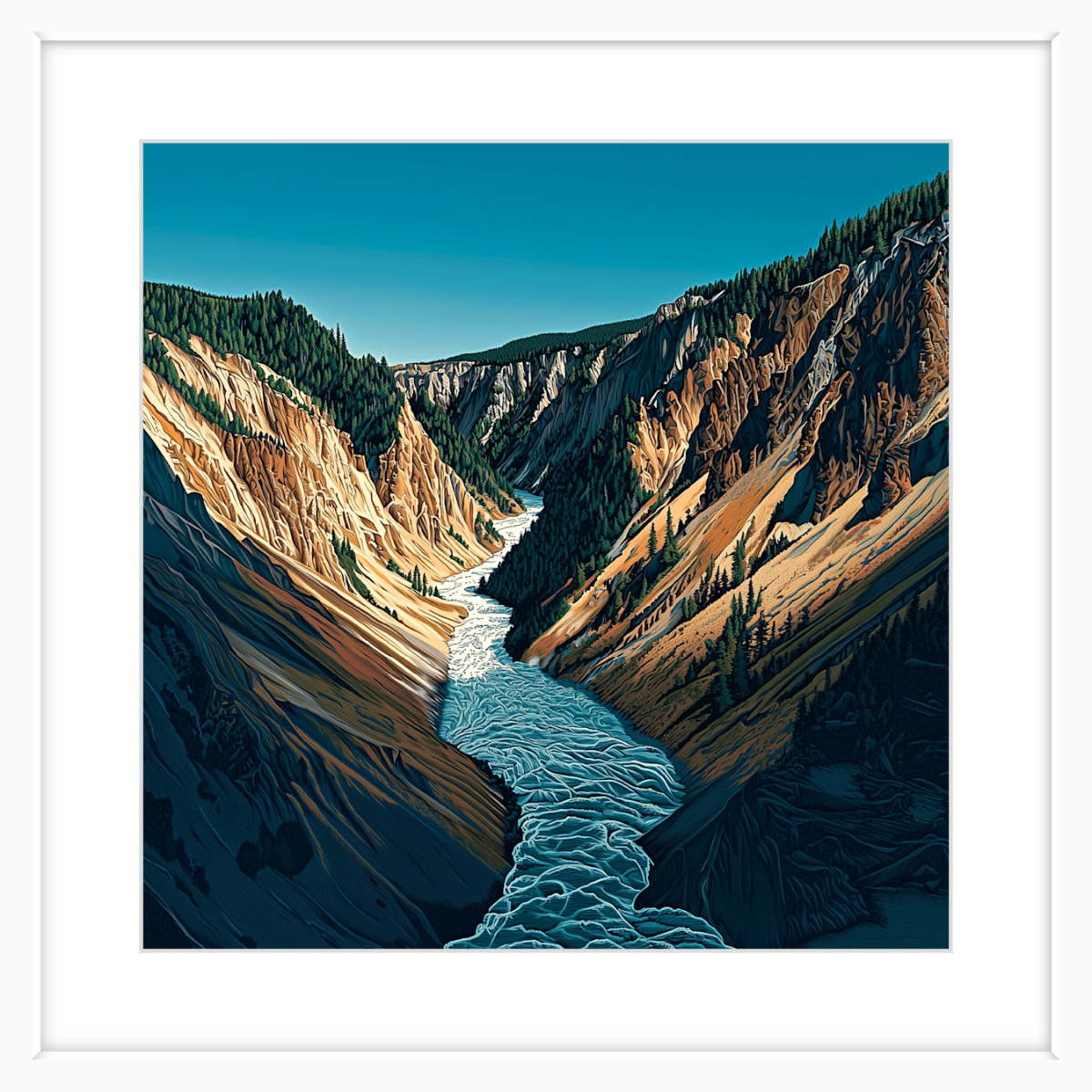This art print of Grand Canyon, Yellowstone is available as a 250x250mm art print, 400x400mm art print, 600x600mm art print and 800x800mm art print. You may also choose to take the hassle out of framing and order it framed, in either black, white or natural.