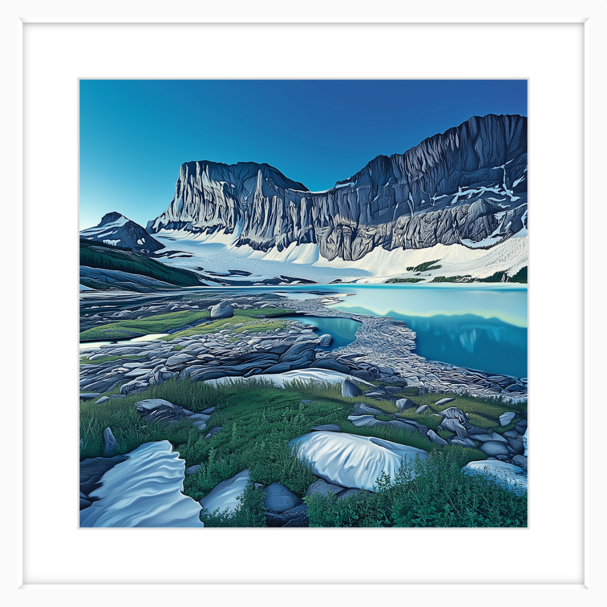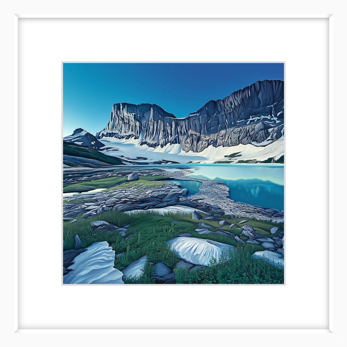 This art print of Grinnell Glacier is available as a 250x250mm art print, 400x400mm art print, 600x600mm art print and 800x800mm art print. You may also choose to take the hassle out of framing and order it framed, in either black, white or natural.
