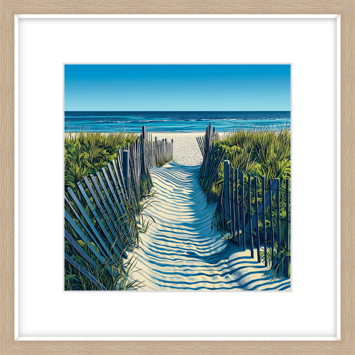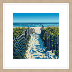 This art print of Hamptons Beach is available as a 250x250mm art print, 400x400mm art print, 600x600mm art print and 800x800mm art print. You may also choose to take the hassle out of framing and order it framed, in either black, white or natural.