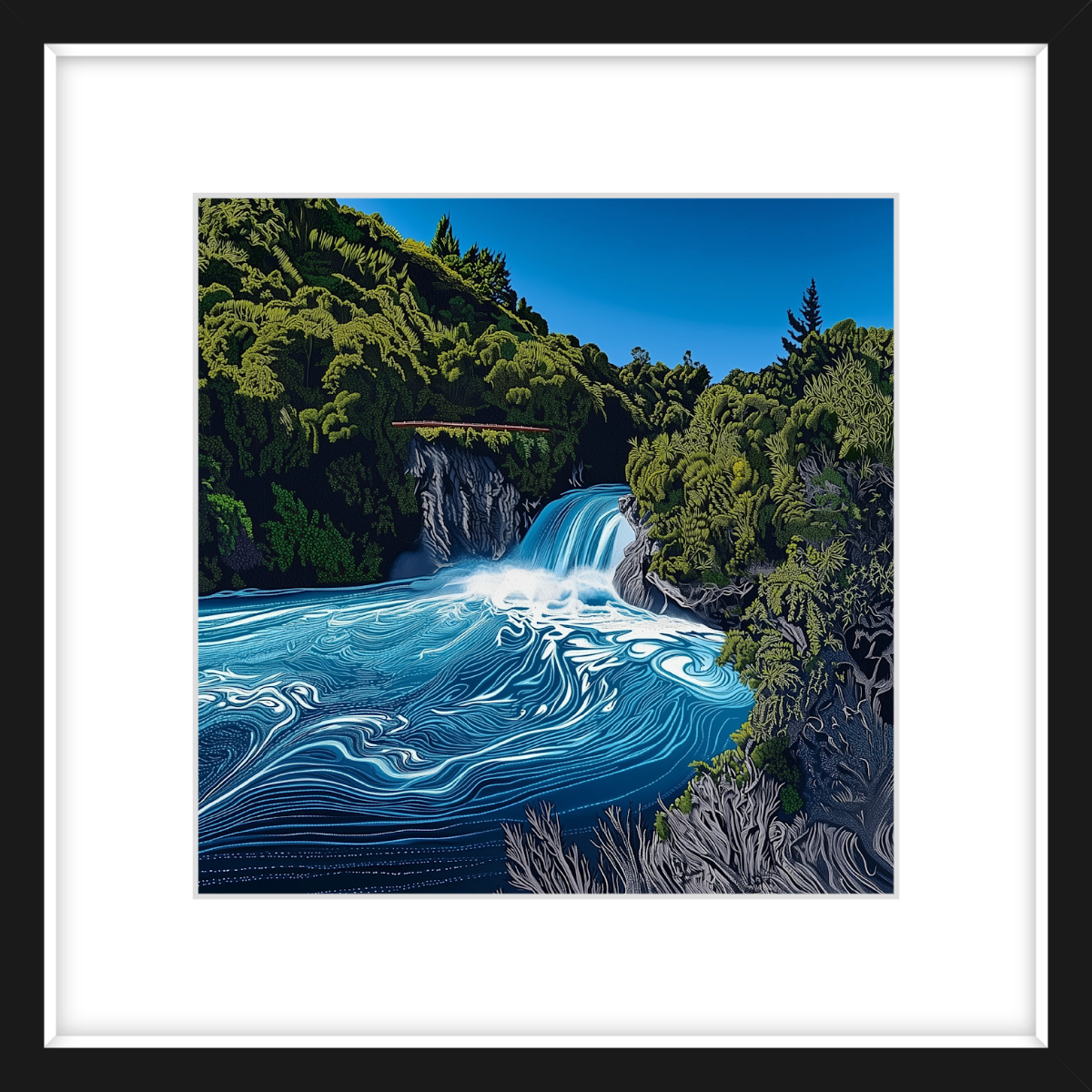 This art print of the Huka Falls is available as 400x400mm art print, 600x600mm art print and 800x800mm art print.