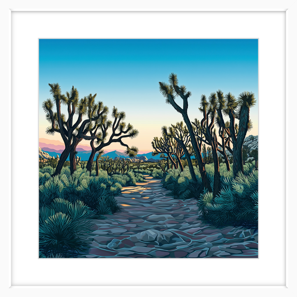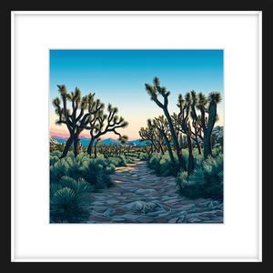 This art print of Joshua Tree National Park is available as 400x400mm art print, 600x600mm art print and 800x800mm art print. You may also choose to take the hassle out of framing and order it framed, in either black, white or natural.