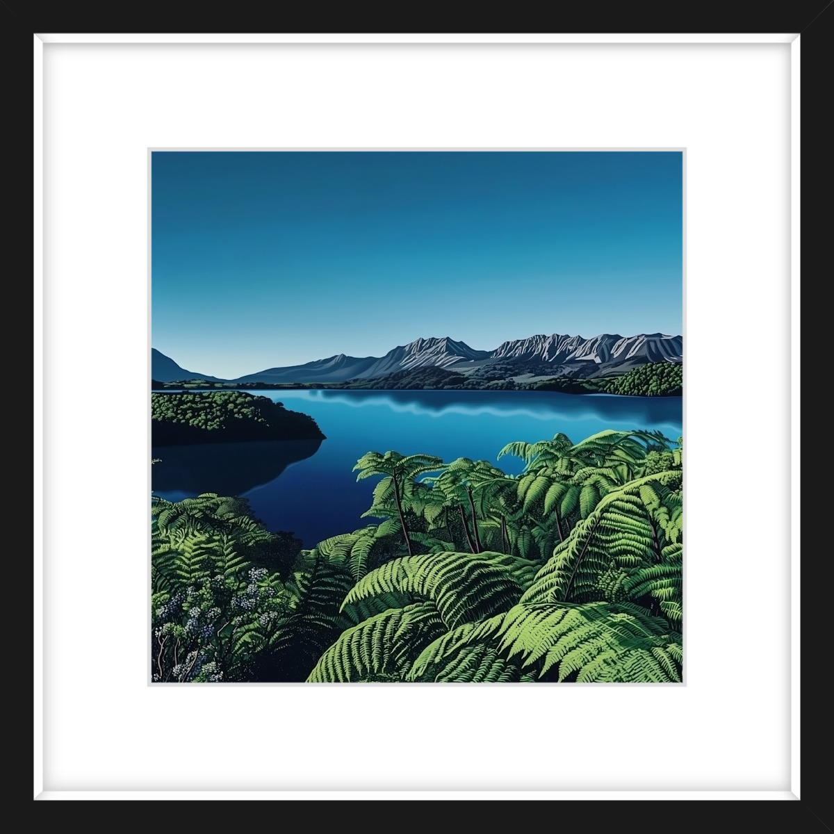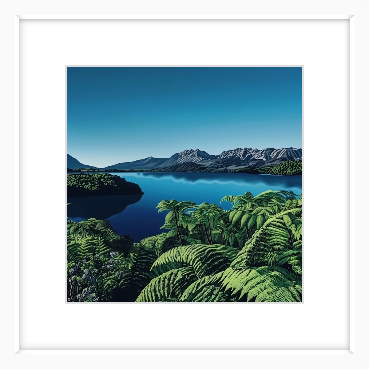 "Lake Tarawera" is a landscape art print, printed on high quality Epson Enhanced 192gsm matte paper, so you'll get images with sharp detail, high colour saturation and a high gamut. It is quick drying with a flat matte finish and a bright white base that accentuates highlights and tones.