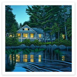 "Lakehouse in Maine" is an open edition wall art print.