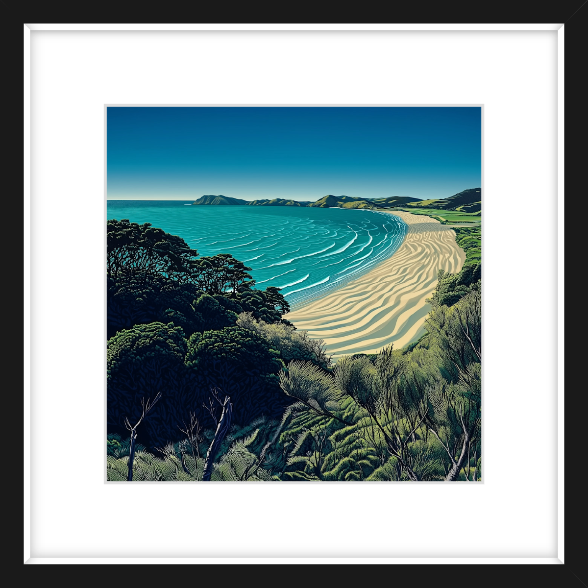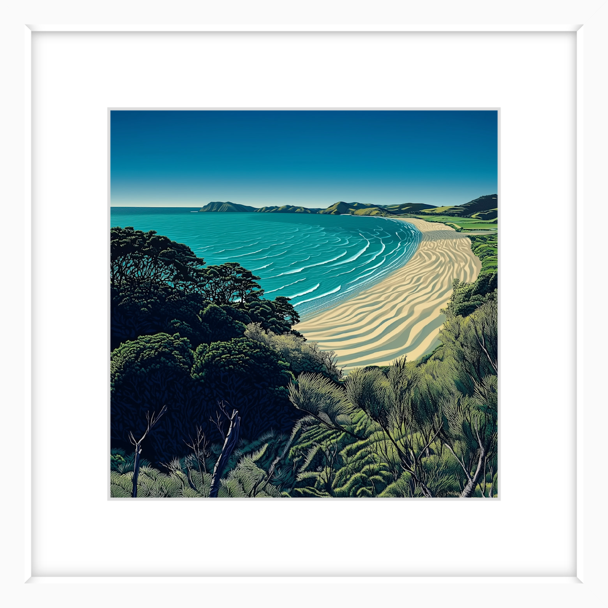 I have loads more art prints available, covering Auckland & Waikato West Coast (Piha, Bethells Beach, Whatipu, Raglan and Muriwai), Northland Beaches, Coromandel Beaches (Hot Water Beach, Cathedral Cove, Hahei, Pauanui) and South Island Beaches, plus East Cape beaches, Australia beaches, and New Zealand waterfalls.