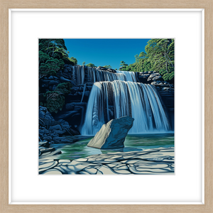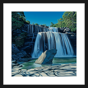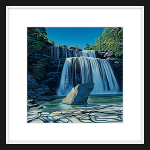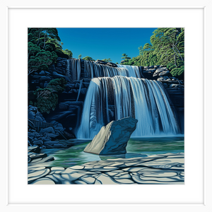 This Mackenzie Fall art print captures the dramatic flow of water tumbling over rugged rock, surrounded by vibrant greens and deep blues. The interplay of light and shadow adds depth, highlighting the raw beauty of this iconic Victorian waterfall. A stunning depiction of natures power and tranquillity.