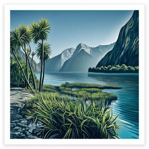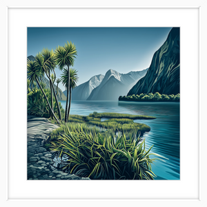 "Milford Sound Cabbage Trees" is an open edition wall art print.
