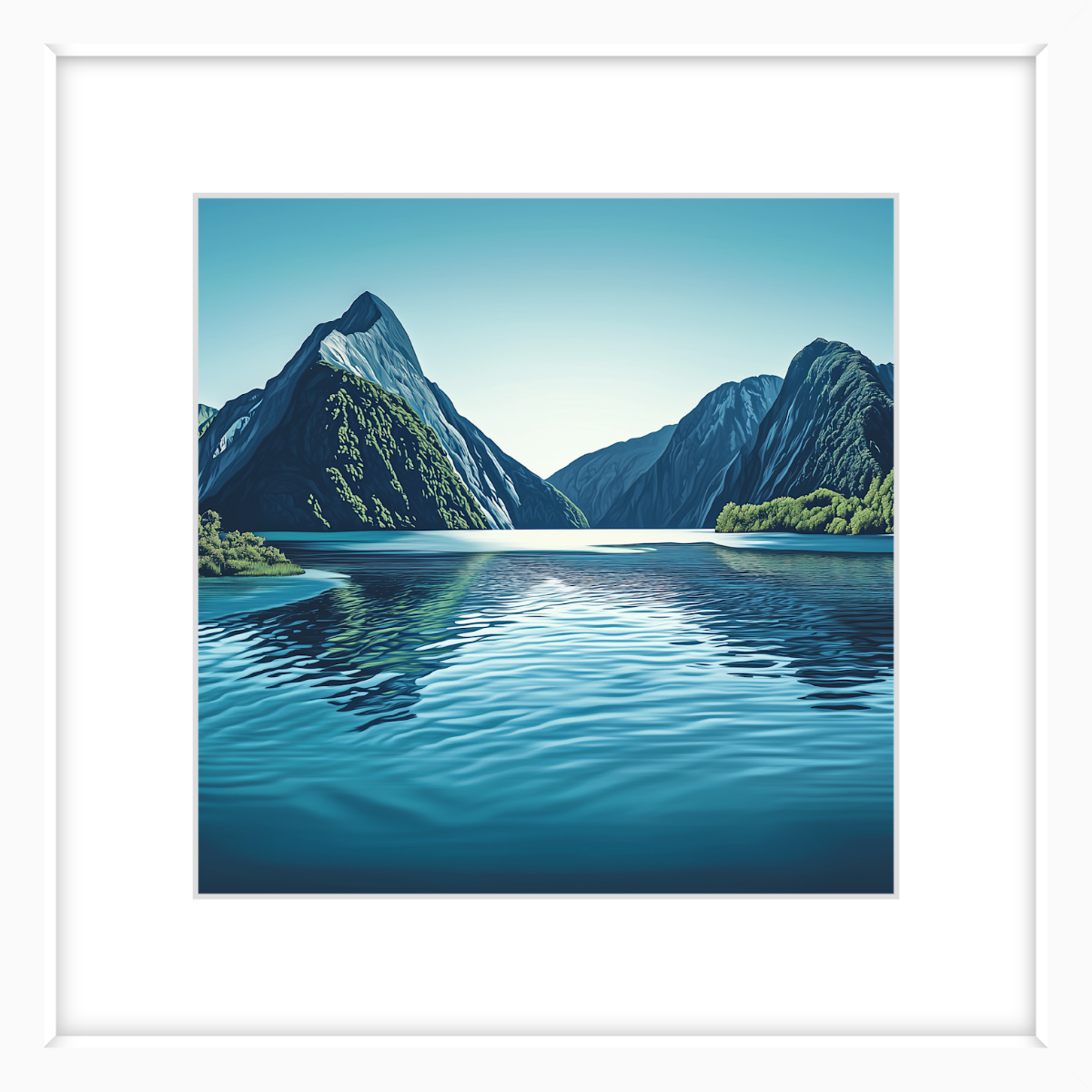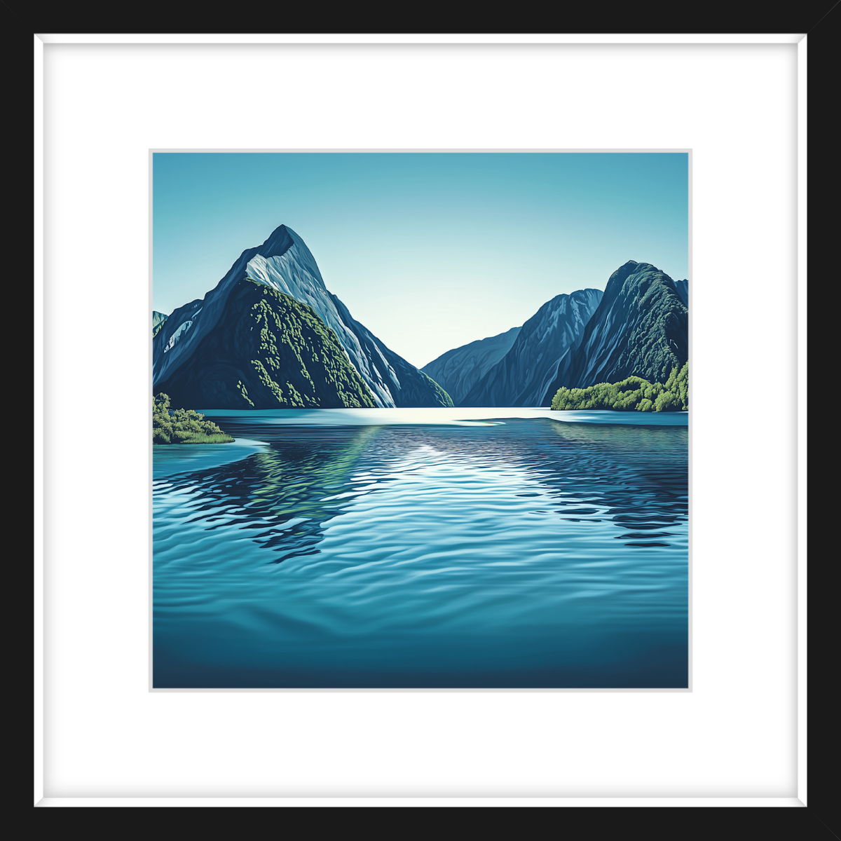 There’s something almost surreal about the way Milford Sound holds a reflection. On a still day, the waters become a perfect mirror, doubling the majesty of Mitre Peak and the surrounding mountains. Here we have a rare moment of utter stillness, where sky and sea become one. The crisp blues and deep greens highlight the purity of this untouched landscape, while the slight ripple on the water reminds us that this is a living, breathing place. Order these prints unframed or framed, with free shipping worldwide.