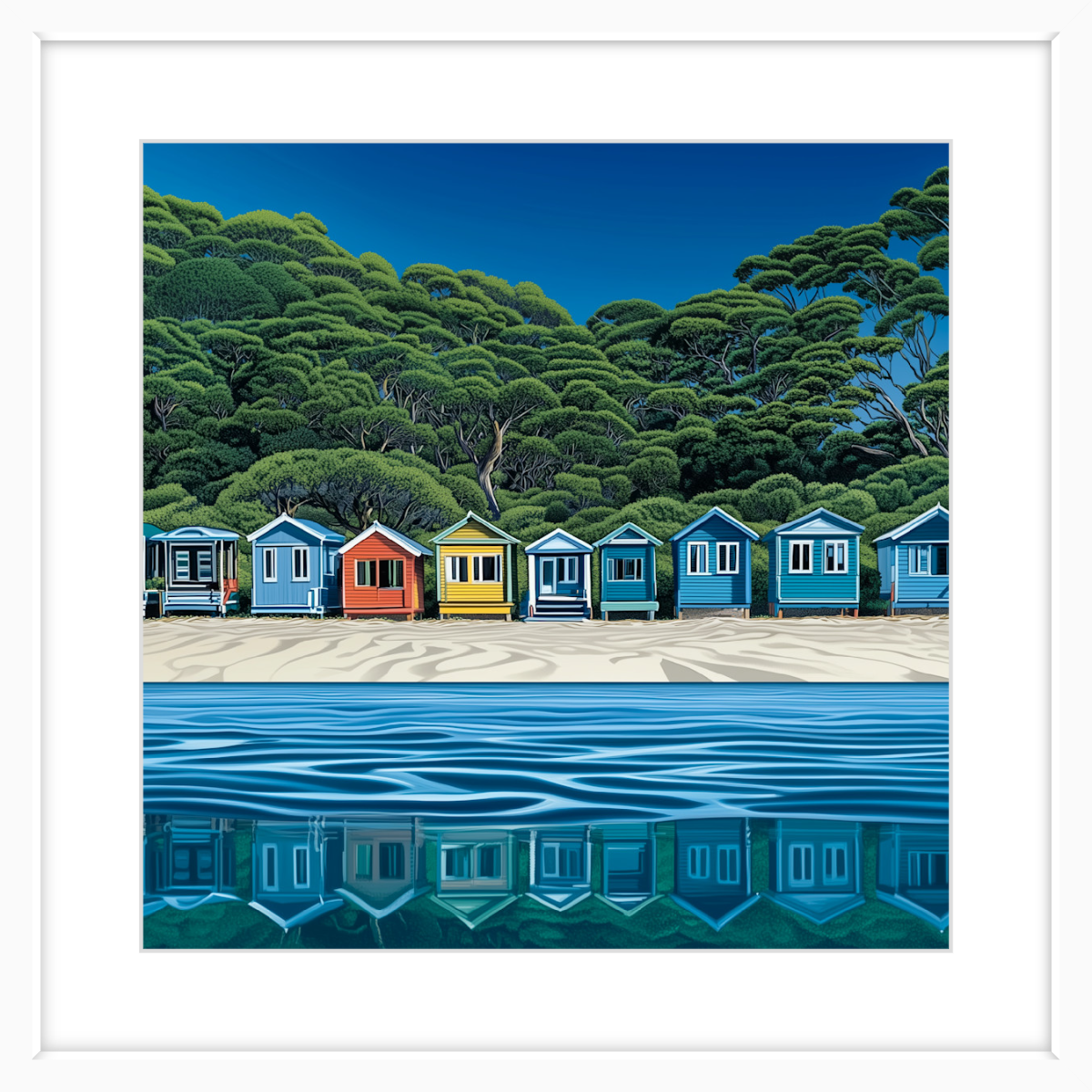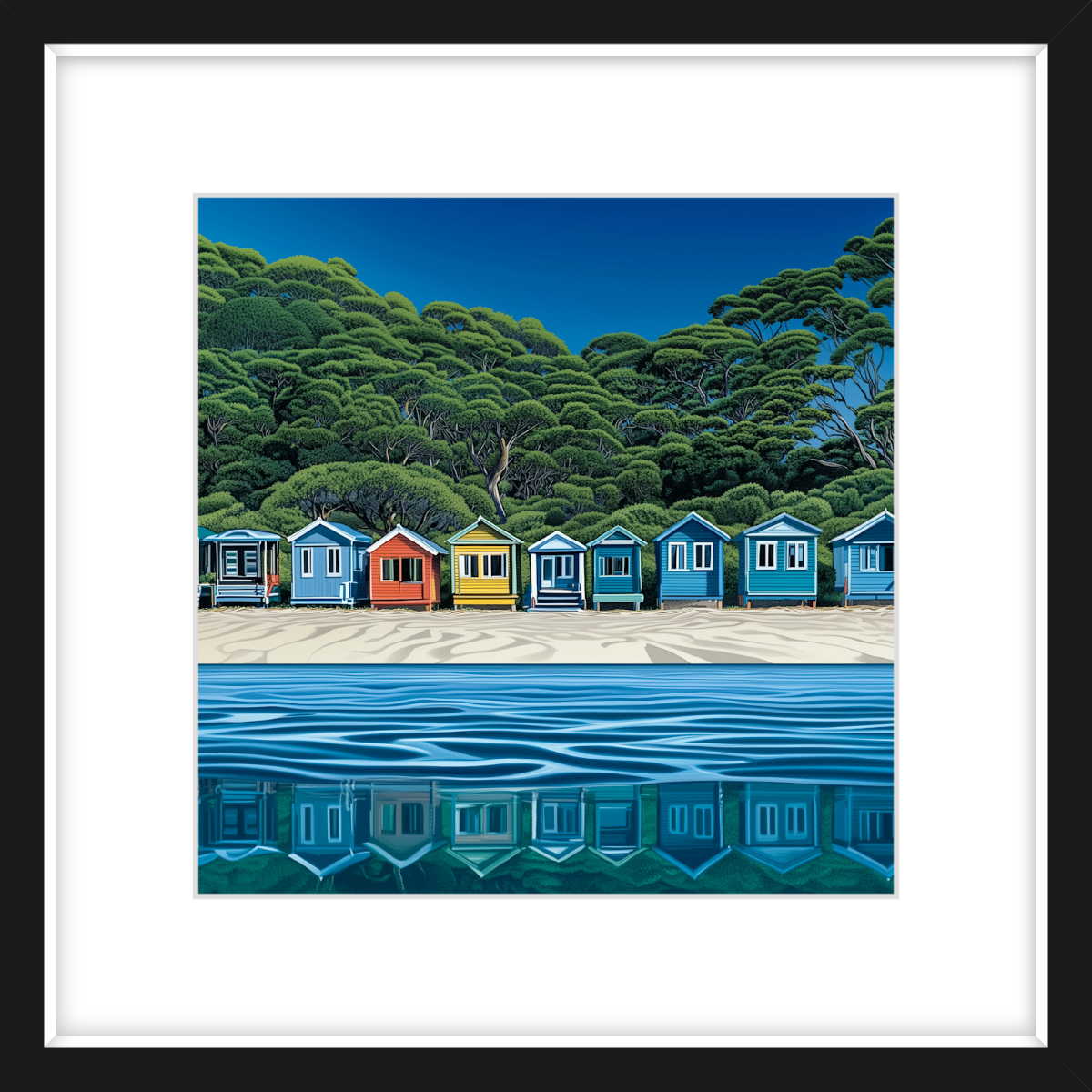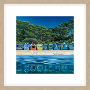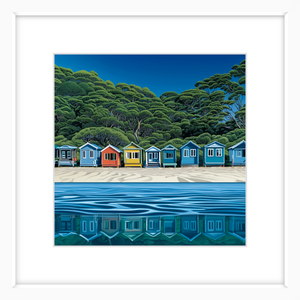 This art print of Mornington Peninsula Boatsheds is available as 400x400mm art print, 600x600mm art print and 800x800mm art print.