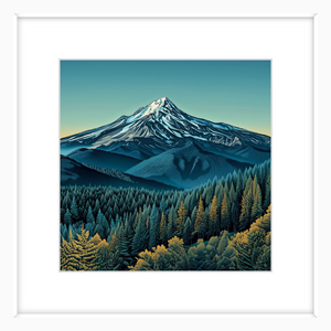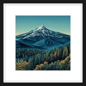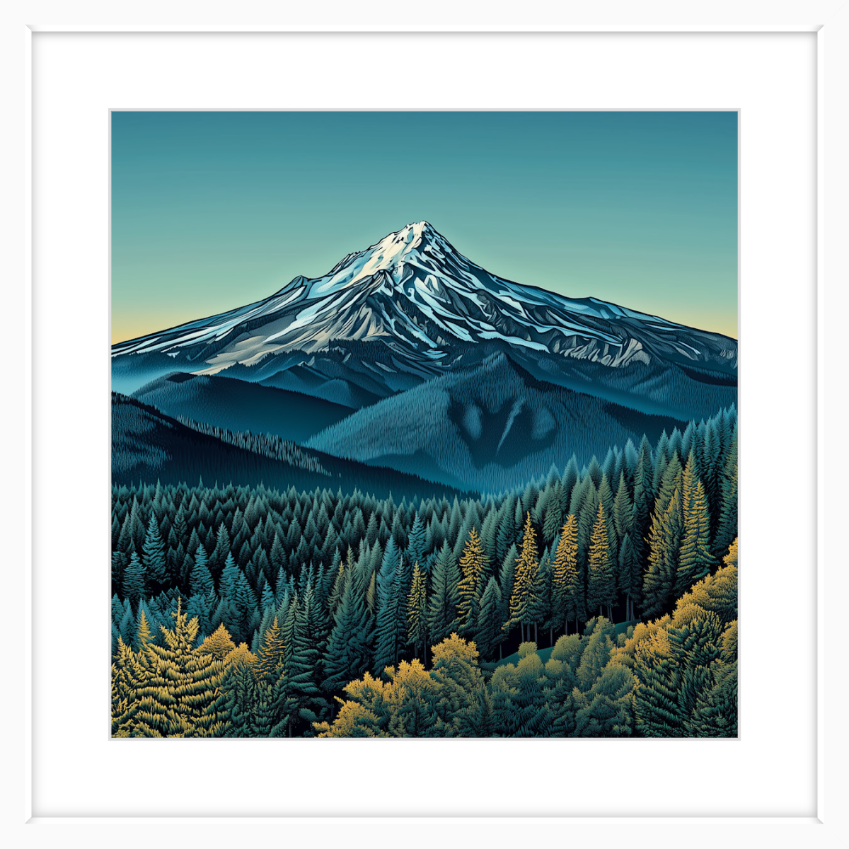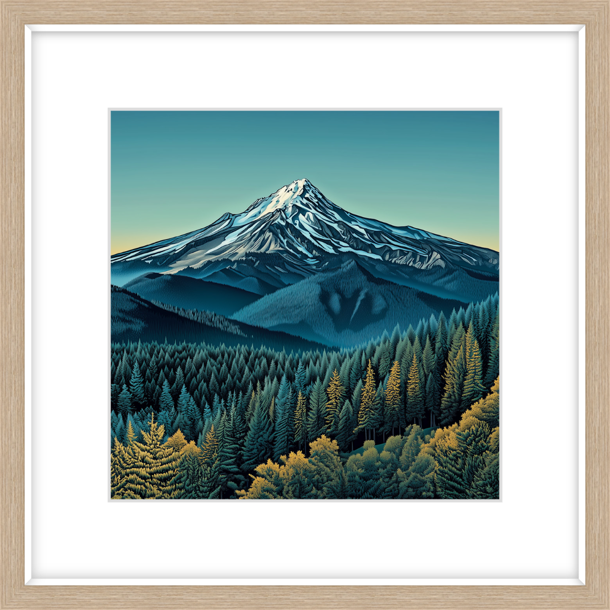 This art print of Mount Hood is available as a 250x250mm art print, 400x400mm art print, 600x600mm art print and 800x800mm art print. You may also choose to take the hassle out of framing and order it framed, in either black, white or natural.