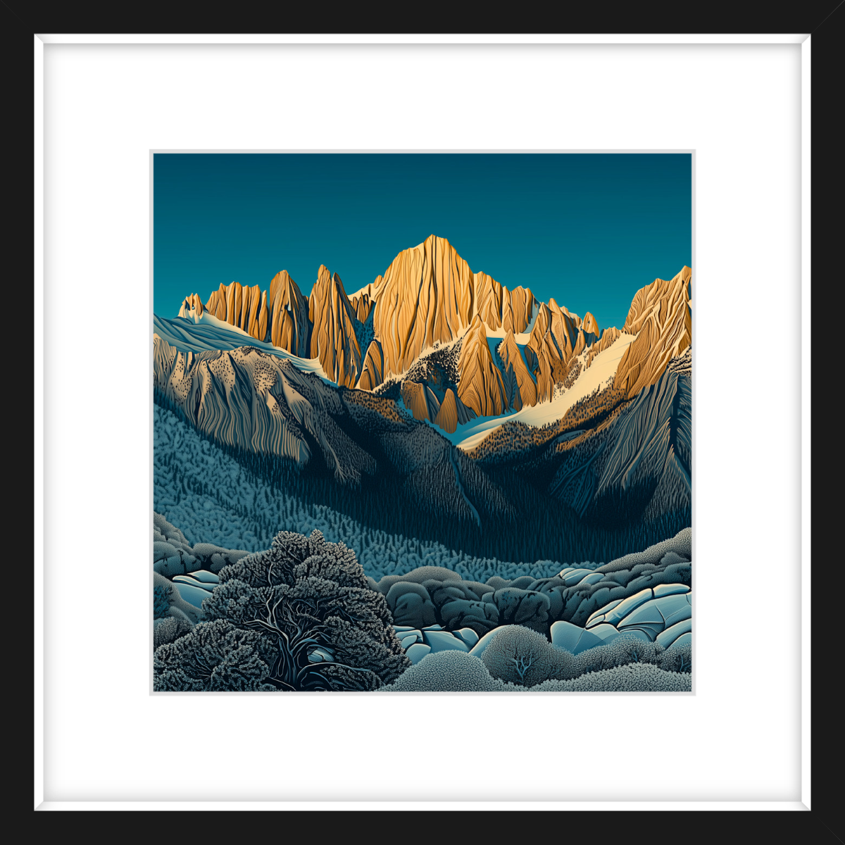 This art print of Mount Whitney is available as 400x400mm art print, 600x600mm art print and 800x800mm art print. You may also choose to take the hassle out of framing and order it framed, in either black, white or natural.