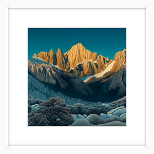 "Mount Whitney" is a landscape art print, printed on high quality Epson Enhanced 230gsm matte paper, so you'll get images with sharp detail, high colour saturation and a high gamut. It is quick drying with a flat matte finish and a bright white base that accentuates highlights and tones.