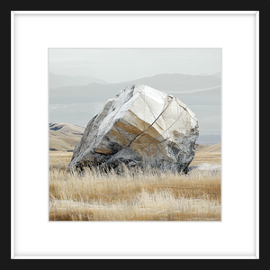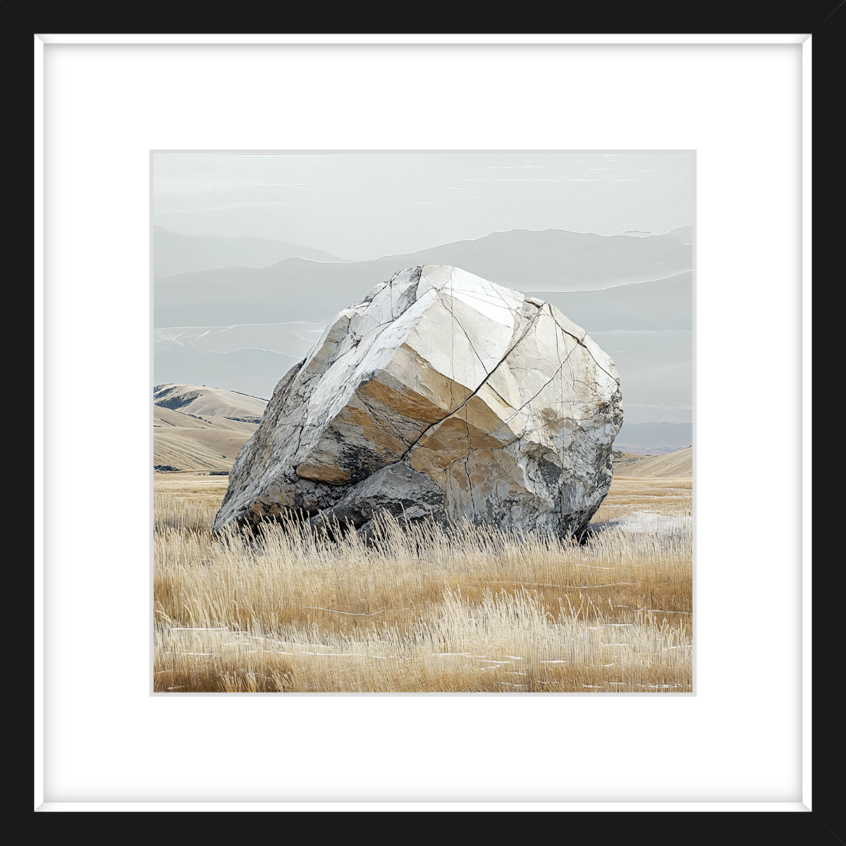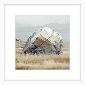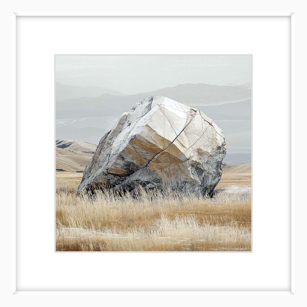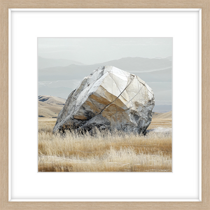 The rugged surface of this boulder, etched with time, sits steadfastly amidst the golden dry grasses of summer. Such quiet strength, the muted tones of beige and gold emphasising the timelessness of this natural monument.
