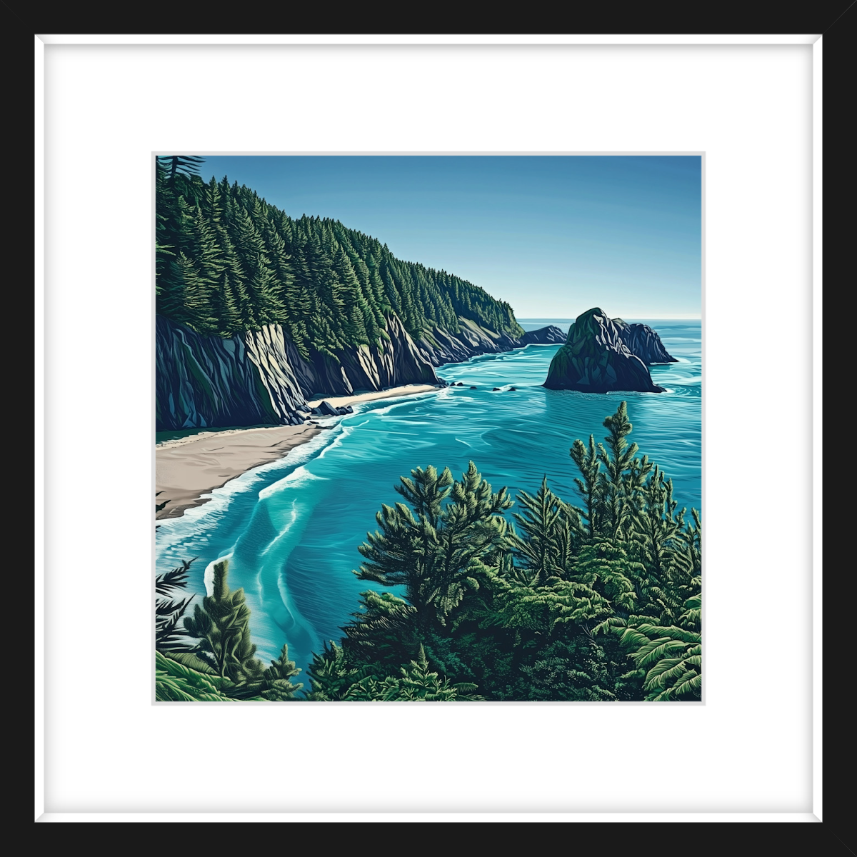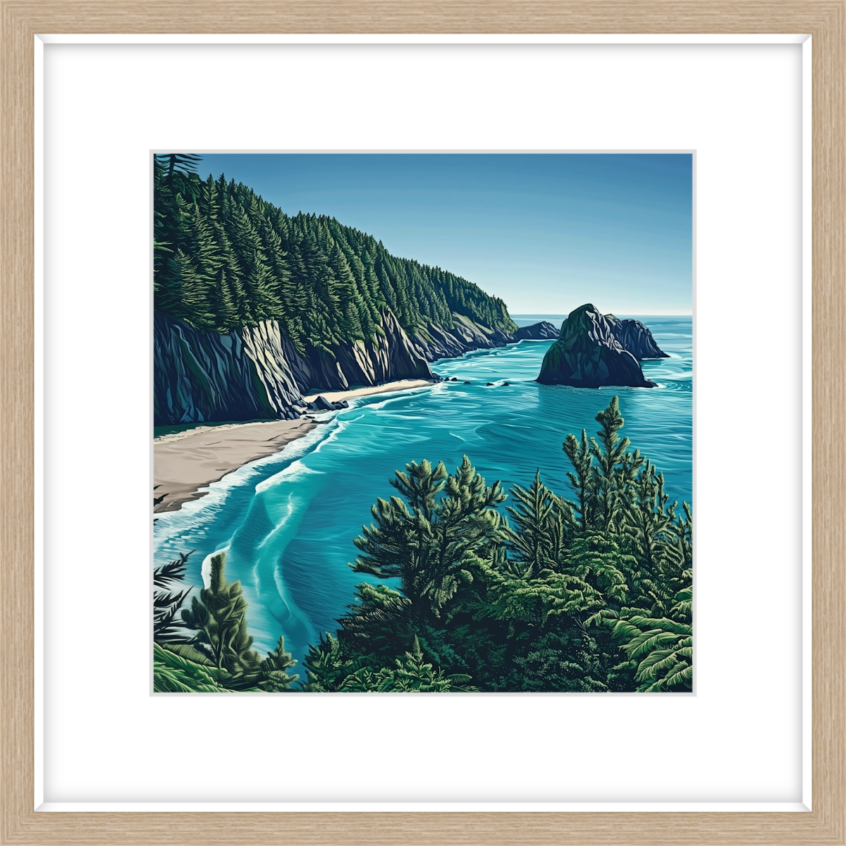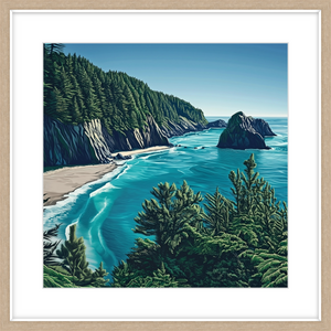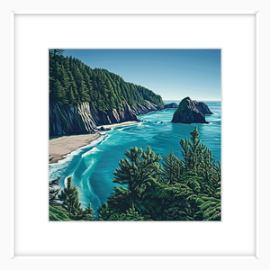 This art print of Oregon Coast is available as 400x400mm art print, 600x600mm art print and 800x800mm art print. You may also choose to take the hassle out of framing and order it framed, in either black, white or natural.