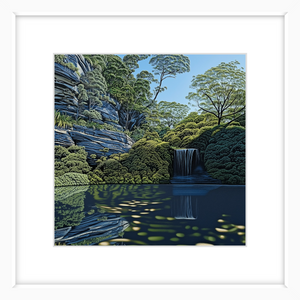 "Paradise Pool" is a landscape art print, printed on high quality Epson Enhanced 192gsm matte paper, so you'll get images with sharp detail, high colour saturation and a high gamut. It is quick drying with a flat matte finish and a bright white base that accentuates highlights and tones.