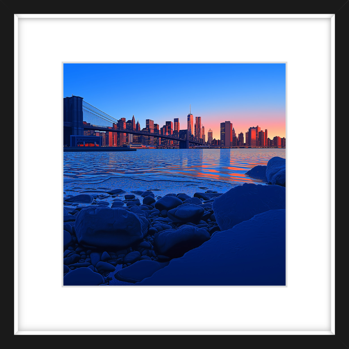 This art print of Pebble Beach, Brooklyn is available as a 250x250mm art print, 400x400mm art print, 600x600mm art print and 800x800mm art print. You may also choose to take the hassle out of framing and order it framed, in either black, white or natural.