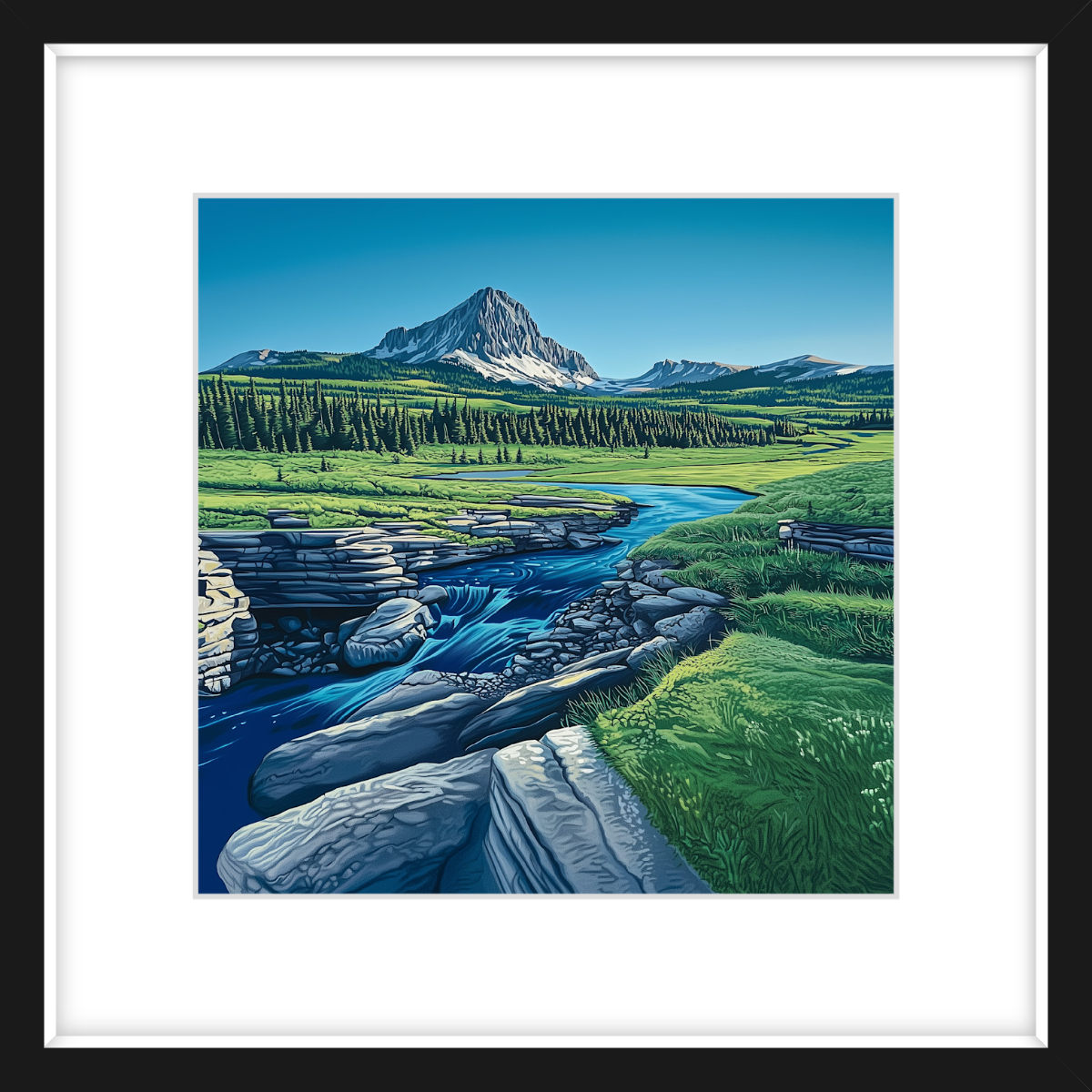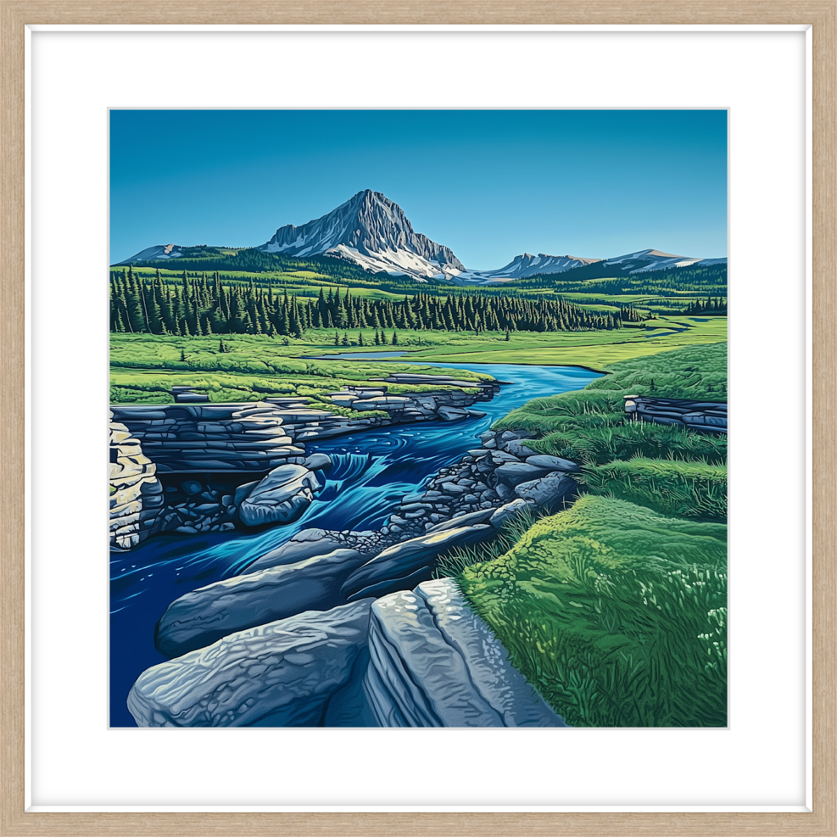 This art print of Reynolds Creek is available as a 250x250mm art print, 400x400mm art print, 600x600mm art print and 800x800mm art print. You may also choose to take the hassle out of framing and order it framed, in either black, white or natural.