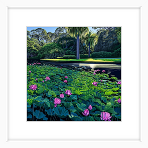 The Royal Botanic Gardens of Melbourne are a favourite of mine for their vibrant mix of colours and textures. Lush greenery contrasts with bright bursts of flowers and the calm water. Anyone who has a love of gardens will appreciate this print of one of Melbourne's most beautiful and iconic spots.