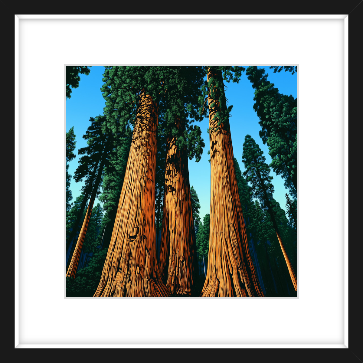 This art print of Sequoia National Park is available as 400x400mm art print, 600x600mm art print and 800x800mm art print. You may also choose to take the hassle out of framing and order it framed, in either black, white or natural.