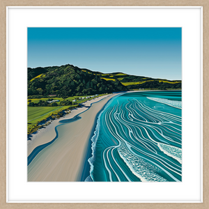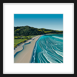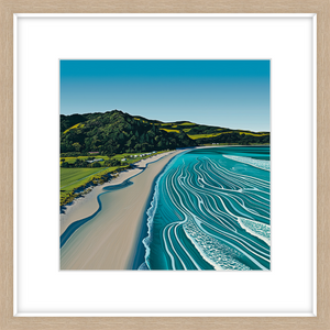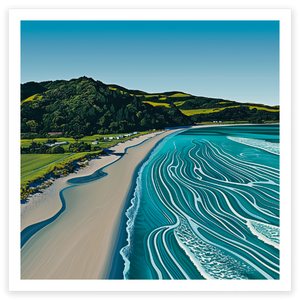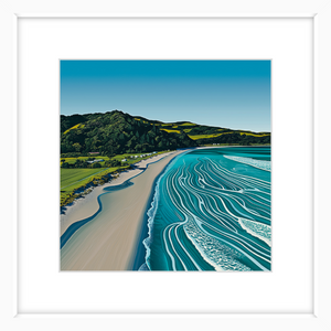 This art print of Tauranga Bay is available as a 400x400mm art print, 600x600mm and 800x800mm art print.