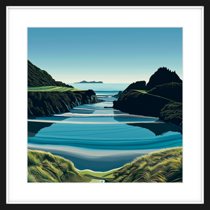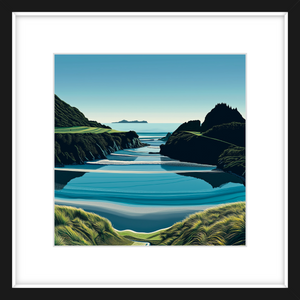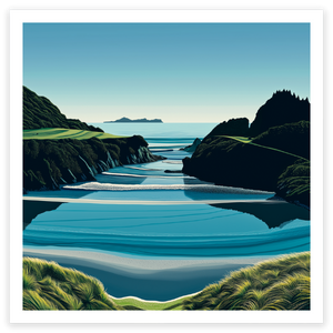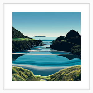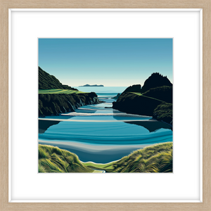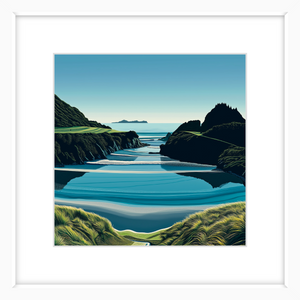 This art print of Te Arai Point is available as a 400x400mm, 600x600mm, or 800x800mm print. It comes unframed; however, if you would like a framed print, please get in touch.