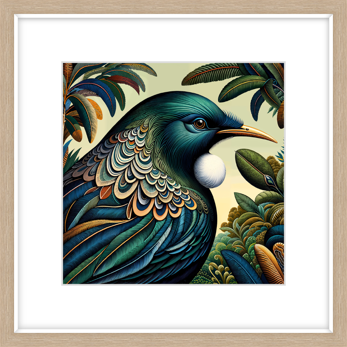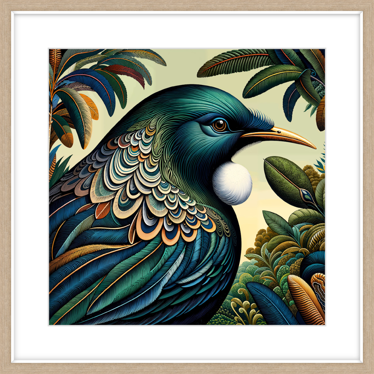 This art print of the Tui is available as 400x400mm art print, 600x600mm art print and 800x800mm art print. You may also choose to take the hassle out of framing and order it framed, in either black, white or natural.