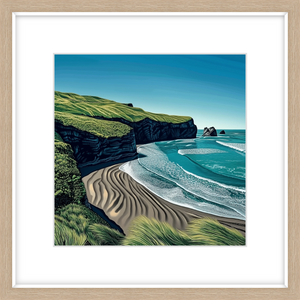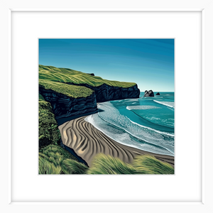 Tunnel Beach is marked by its sculpted sandstone cliffs and a narrow hand-carved tunnel that leads to a secluded shoreline. The seas turquoise water pushes against the rock face, creating curves and edges over time. Waves retreat to reveal intricate patterns in the sand, shaped by the tides.