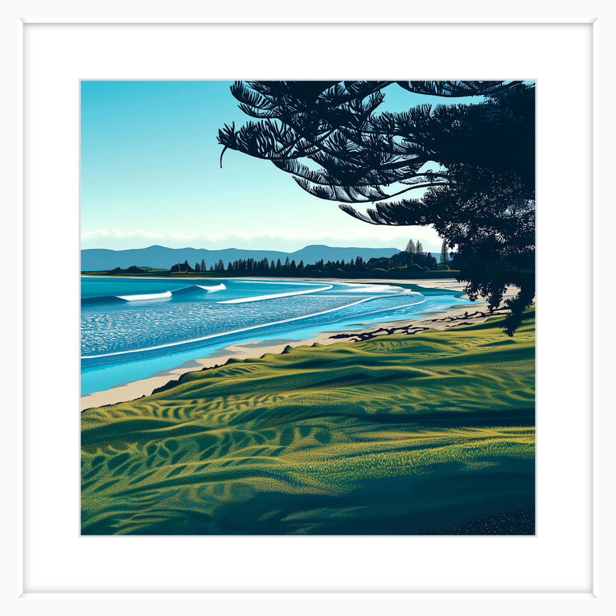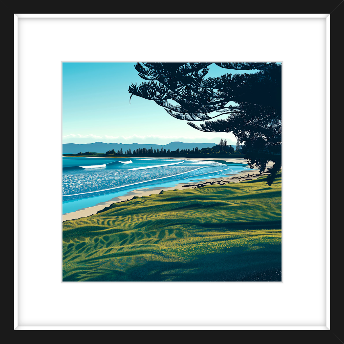 This art print of Waikanae Beach is available as a 400x400mm, 600x600mm and 800x800mm art print.