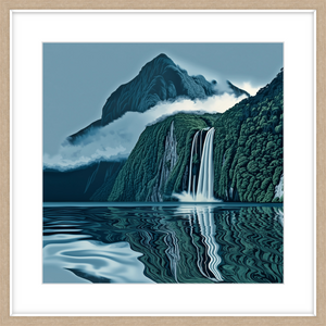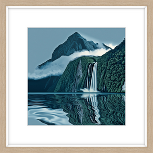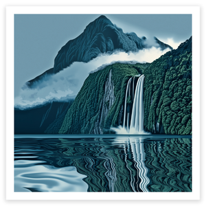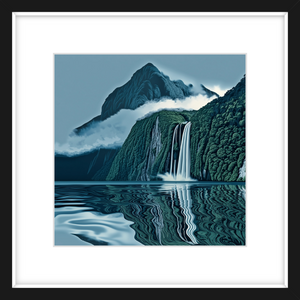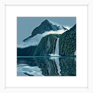 Whether you’ve been there or dream of going, this print evokes the raw, untamed beauty that makes Milford Sound one of the world’s most magical places. This powerful waterfall cascades through the mist, its reflection rippling softly on the surface. Order this print unframed or framed, with free shipping worldwide.