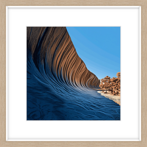 This piece showcases the dramatic curves of Wave Rock, its sandstone folds flowing like a frozen wave against a backdrop of clear blue skies. The intricate textures and bold contrast capture the rocks majestic, almost surreal presence, making it a striking centerpiece for any room.