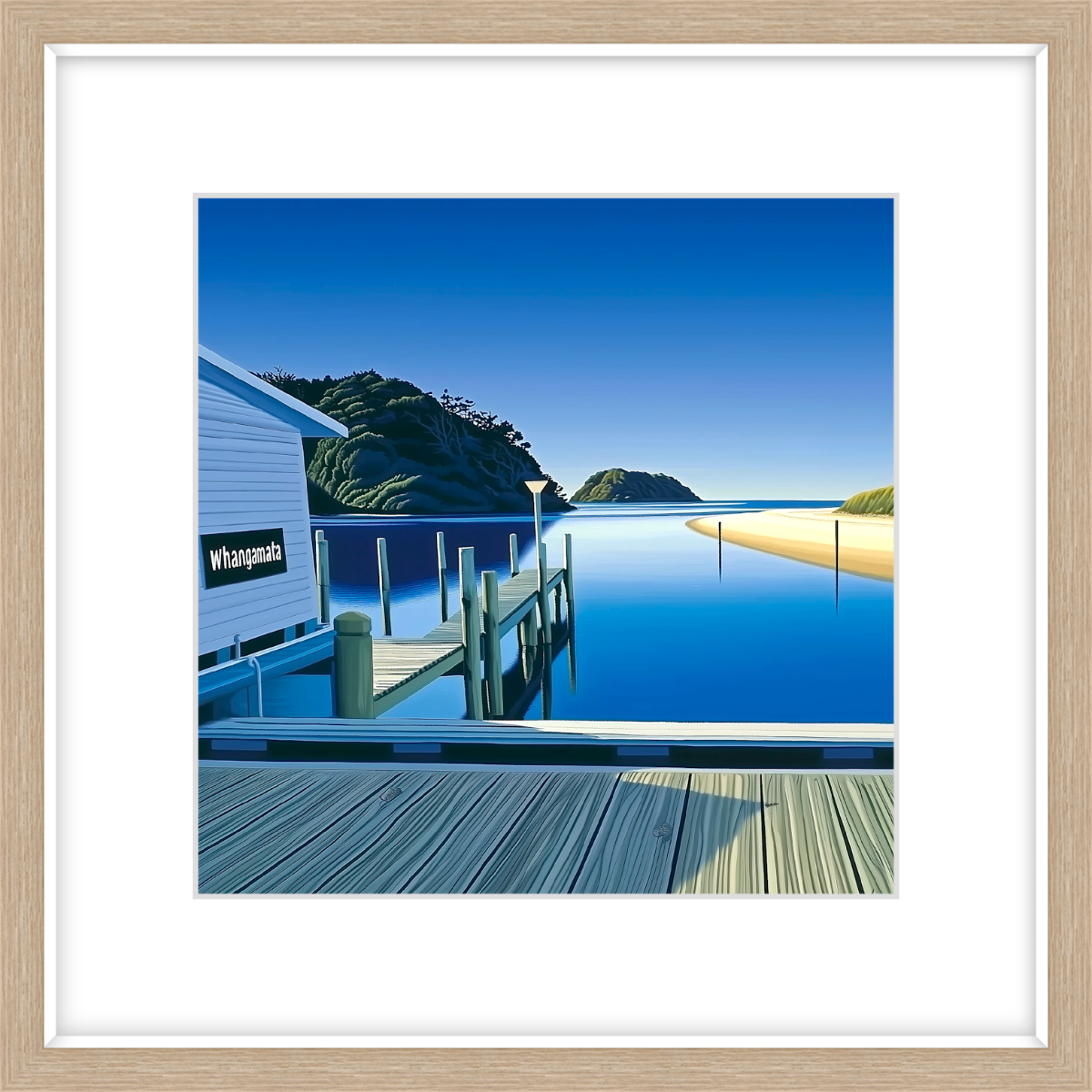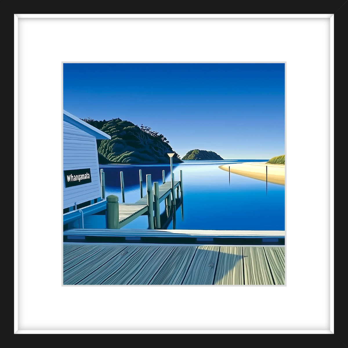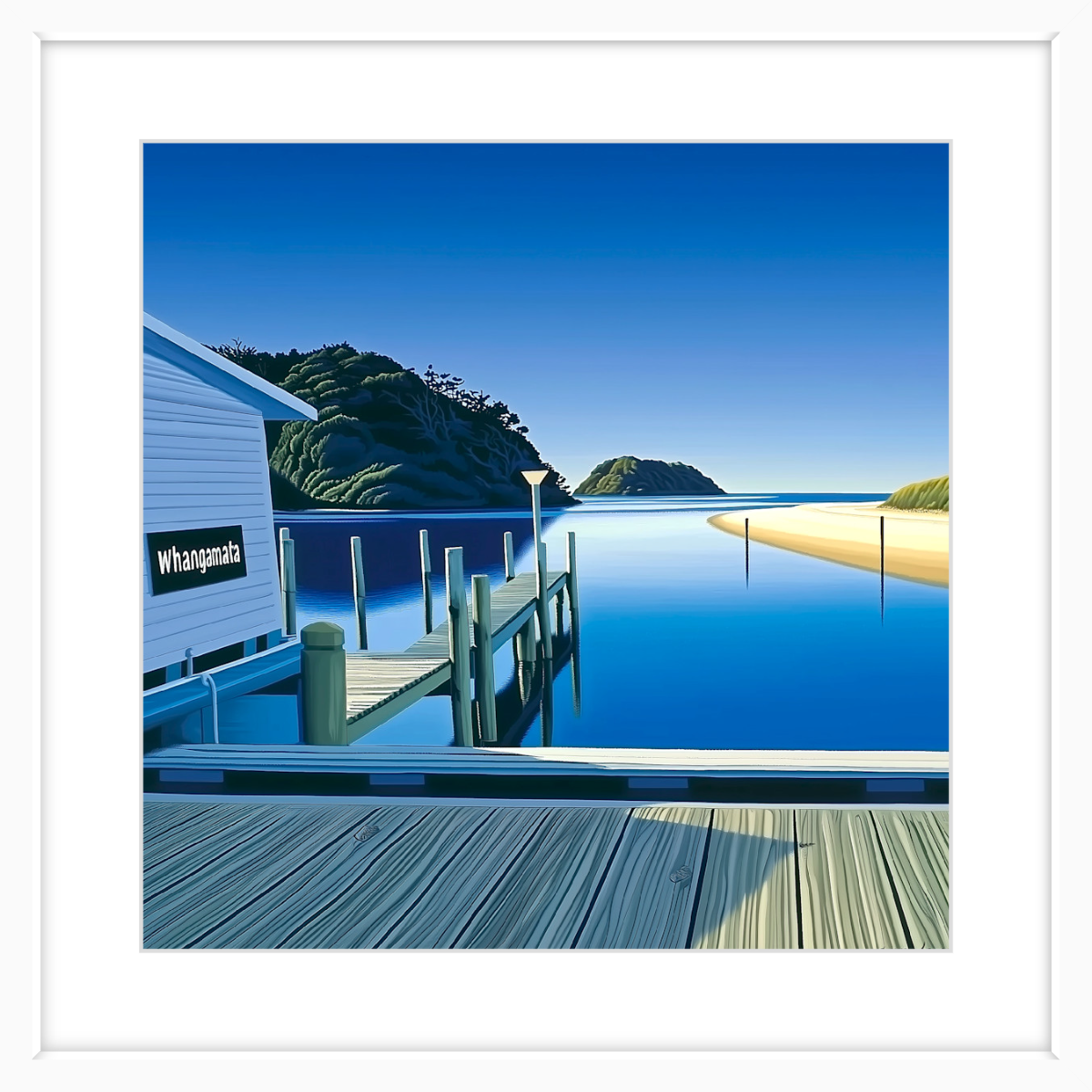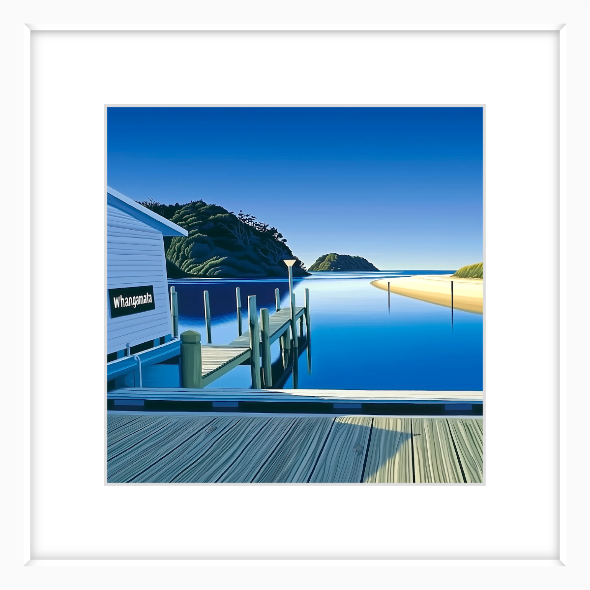 This art print of Whangamata Wharf is available as 400x400mm art print, 600x600mm art print and 800x800mm art print.