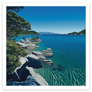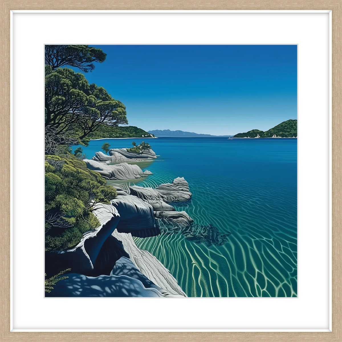 "Whangaparapara Harbour" is a landscape art print, printed on high quality Epson Enhanced 192gsm matte paper, so you'll get images with sharp detail, high colour saturation and a high gamut. It is quick drying with a flat matte finish and a bright white base that accentuates highlights and tones.