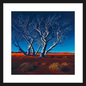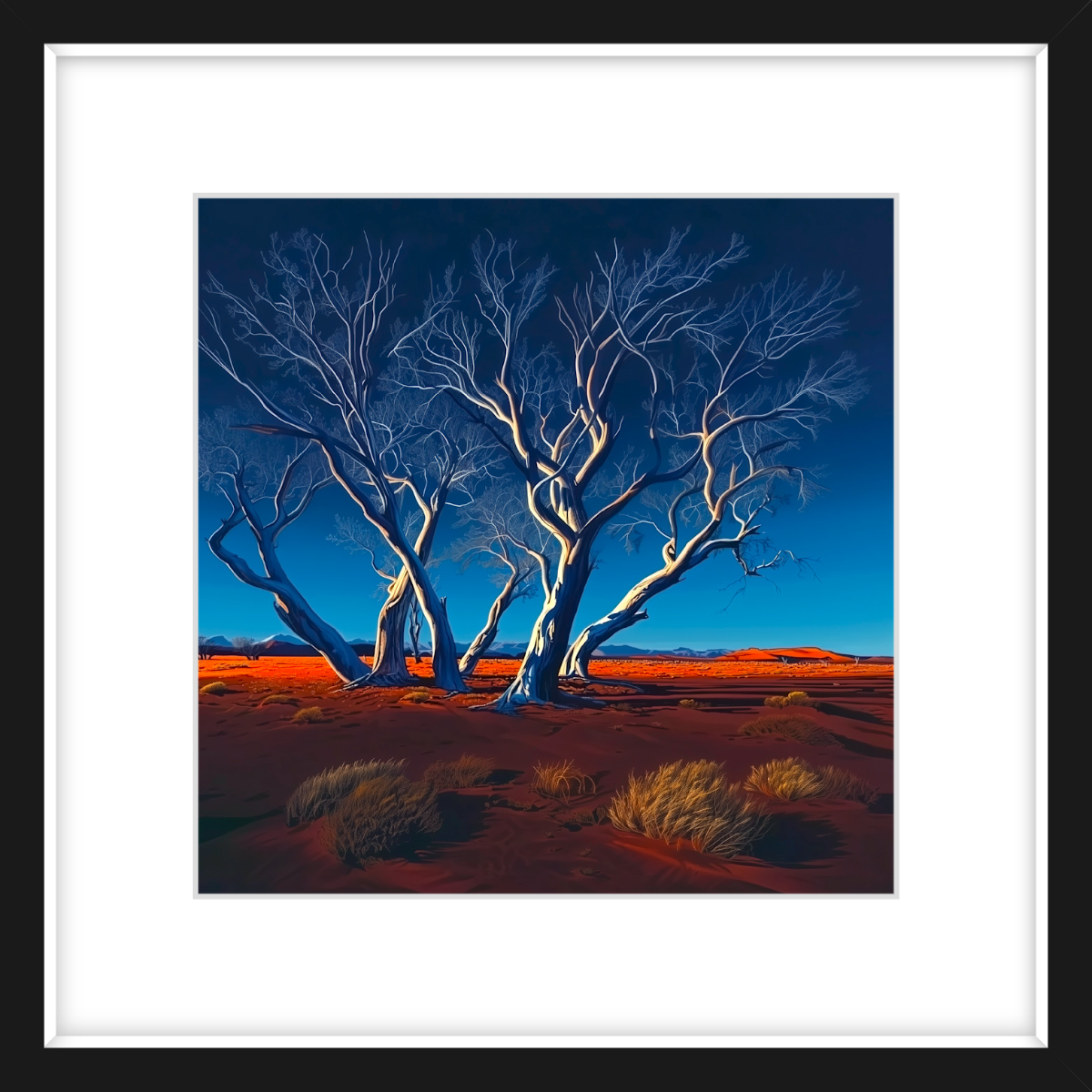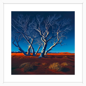 The White Ghost Gum is a true standout, with its bright white trunk glowing somewhat spookily against the deep reds of the outback. This print brings out its striking contrasts and graceful shape, making it a bold and memorable addition to any space. Its simple, elegant, and full of natural charm.