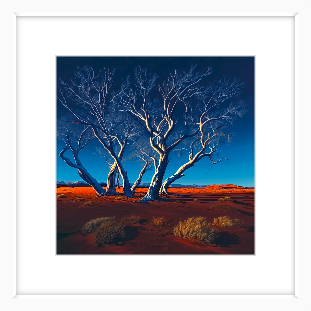 This art print of the White Ghost Gum is available as 400x400mm art print, 600x600mm art print and 800x800mm art print.