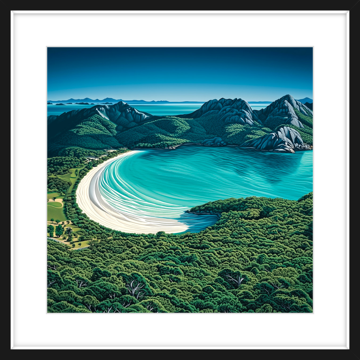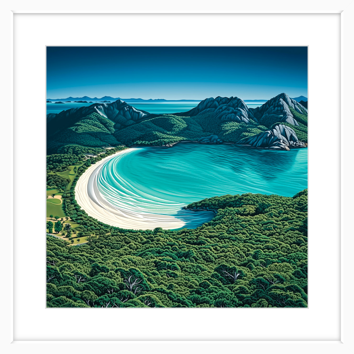 This art print of Wineglass Bay is available as 400x400mm art print, 600x600mm art print and 800x800mm art print.