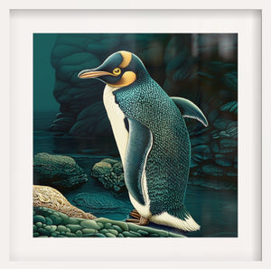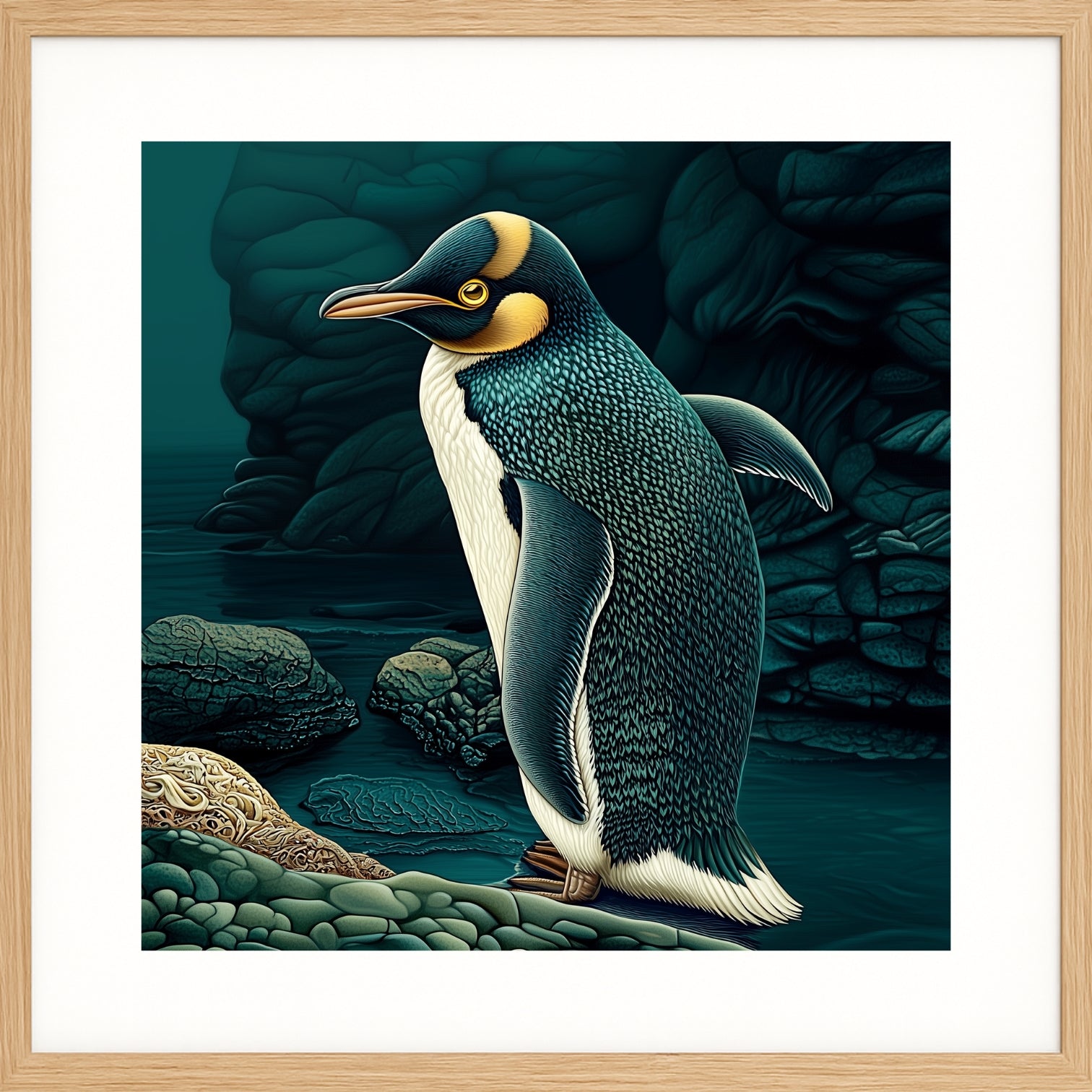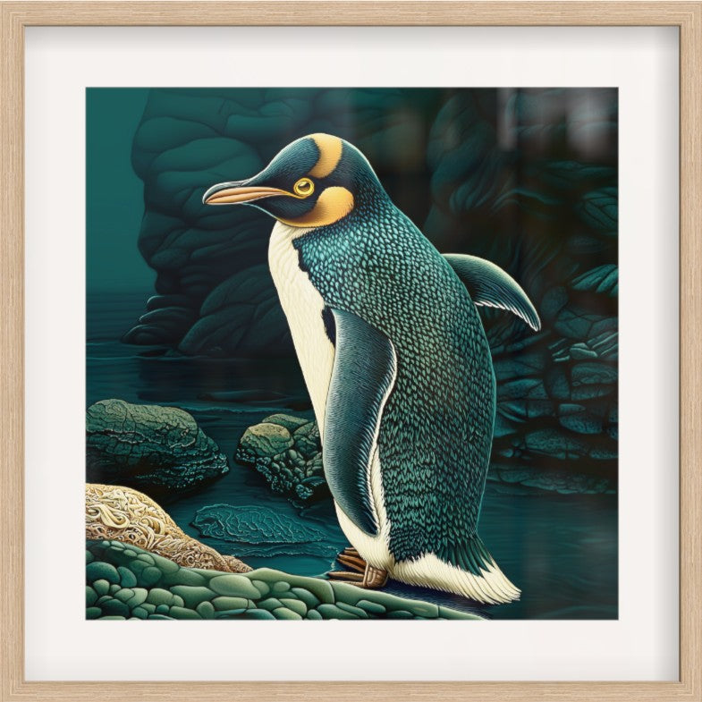 Known as Hoiho, the Yellow-Eyed Penguin is the world’s rarest penguin, found along the southeastern coasts of New Zealand. This artwork shows their quiet dignity and highlights the urgent need to preserve their dwindling habitats.