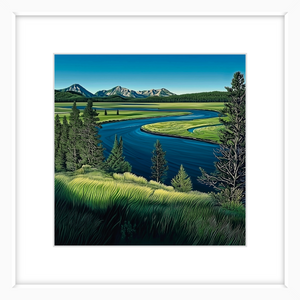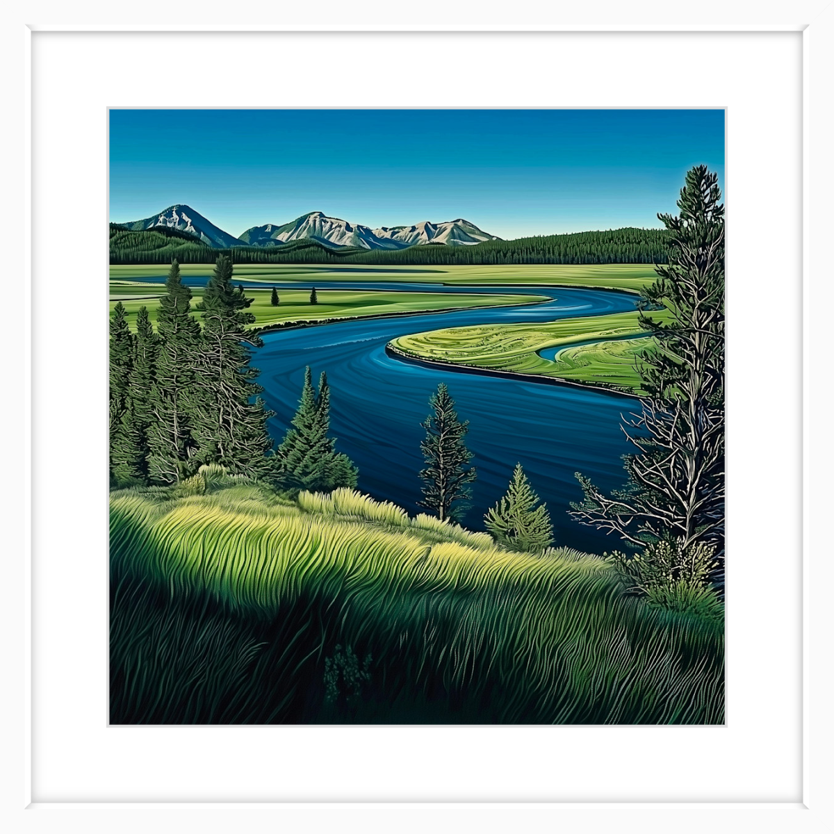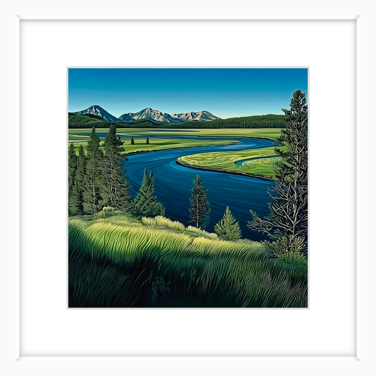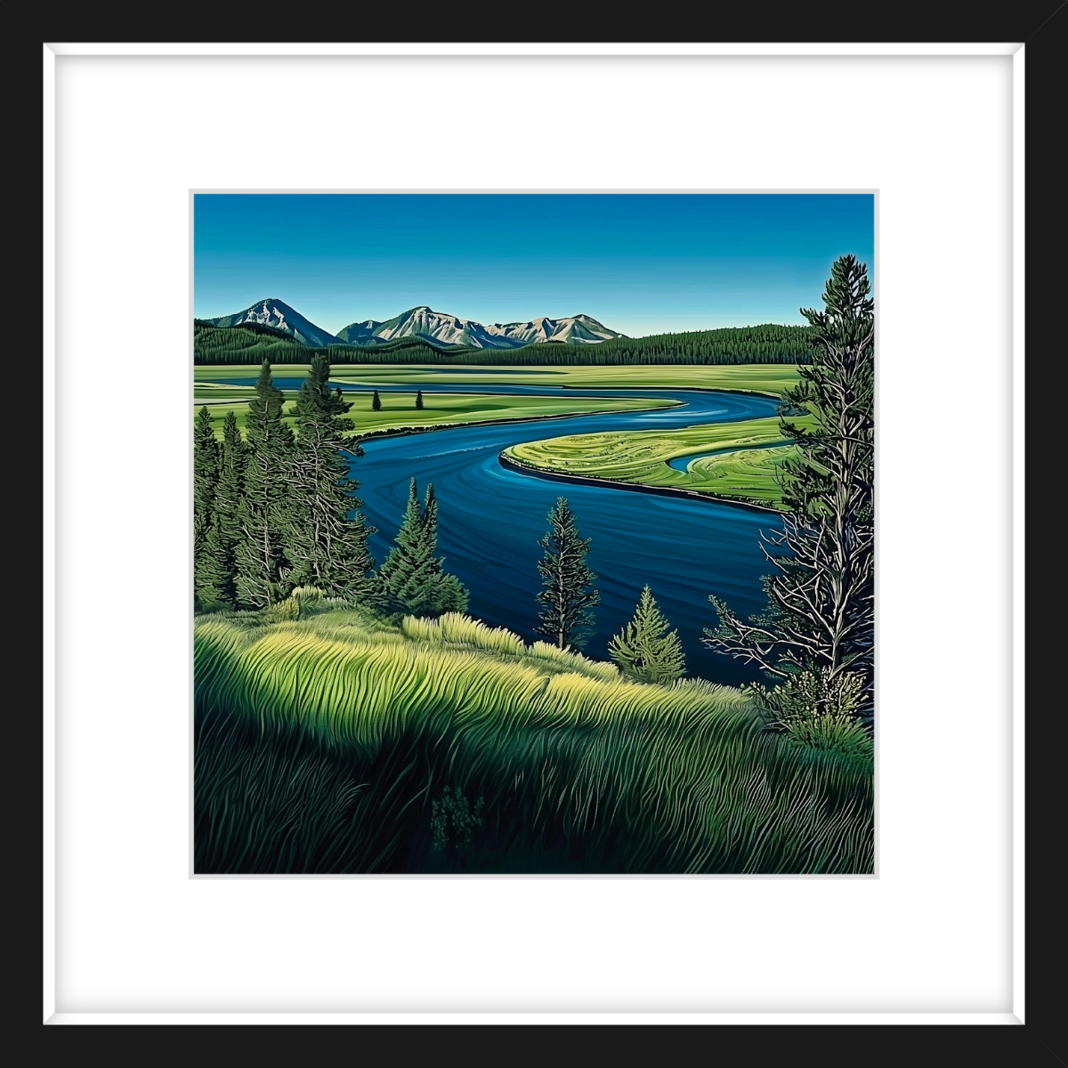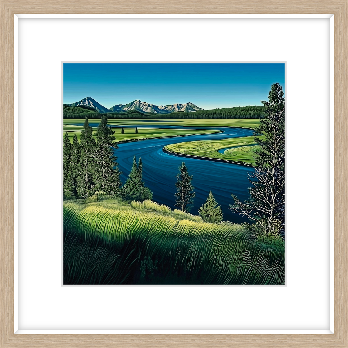 This art print of Yellowstone River is available as a 250x250mm art print, 400x400mm art print, 600x600mm art print and 800x800mm art print. You may also choose to take the hassle out of framing and order it framed, in either black, white or natural.