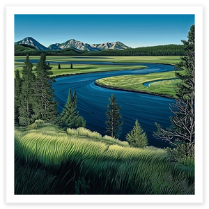 "Yellowstone River" is a landscape art print, printed on high quality Epson Enhanced 230gsm matte paper, so you'll get images with sharp detail, high colour saturation and a high gamut. It is quick drying with a flat matte finish and a bright white base that accentuates highlights and tones.